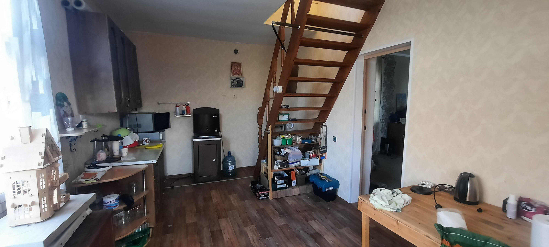 Кирпичный (75 кв.м.), два этажа с мансардой, на первом этаже прихожая-кухня и просторная комната (31 кв.м.), на втором этаже мансарда и комната (21 кв.м.) со множеством ниш. Дом утеплен и готов к круглогодичному проживанию. Электричество 5 квт с возможным увеличением мощности до 15 квт. Дому присвоен номер (возможна прописка).