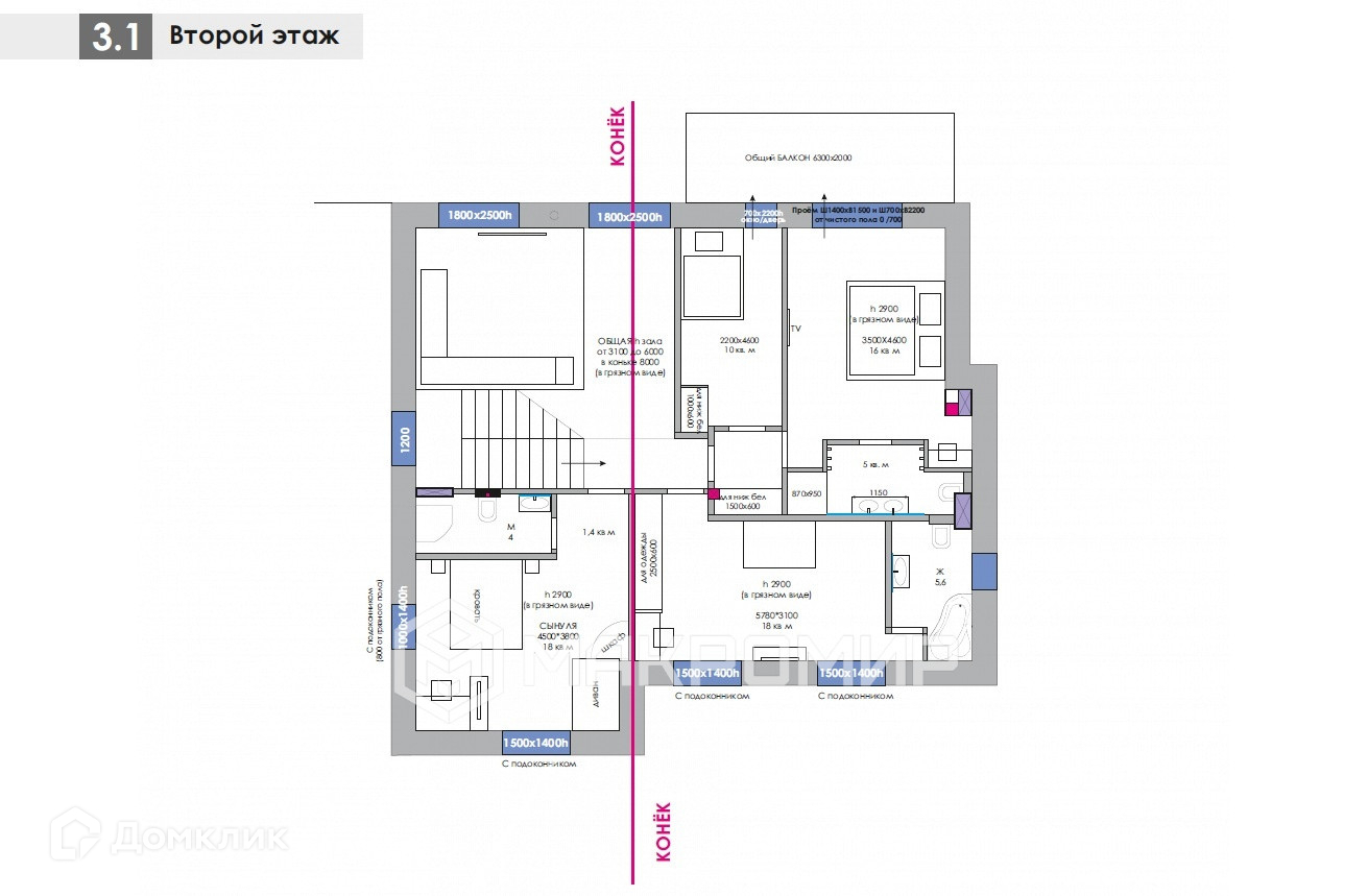 2 ЭТАЖ: 4 спальные комнаты и 3 санузла, итого 90 кв. м