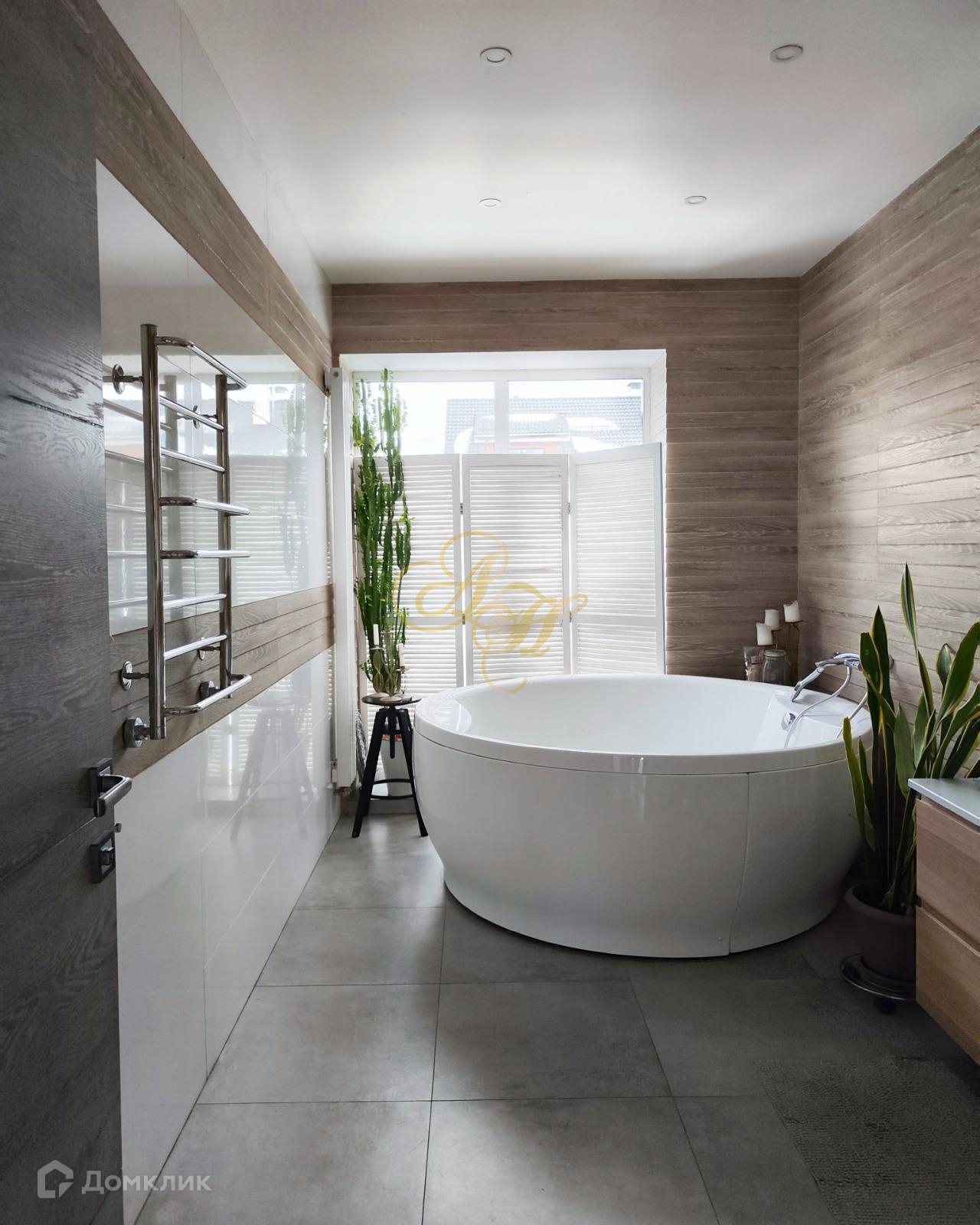 Ванная комната заслуживает отдельного внимания. Отдельно стоящая большая ванна, в которой будет удобно детям беззаботно принимать водные процедуры. А взрослые смогут порадовать себя расслабляющим аква сеансом, зажечь свечи, добавить пены, ароматной соли. Практически спа-салон, не выходя из дома.