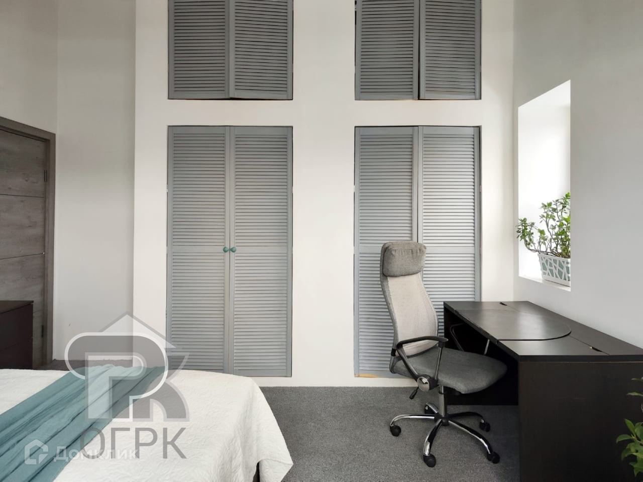 На 3-ем этаже расположились также 2 спальни по 18 м2, библиотечная зона 4,64 м2 и ванная комната с душевой кабиной 6,5 м2. В обеих комнатах переменная высота потолка. Панорамные окна обеспечивают достаточное количество дневного света. В каждой комнате по 2 окна. Система кондиционирования позволит создать летом комфортную температуру в помещениях. В отделке пола используется ковролин.