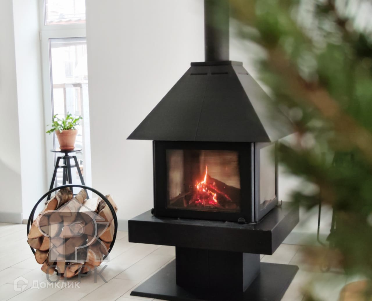 На 1-ом этаже находится прихожая 4,24 м2, просторная кухня-гостиная 45,15 м2 с панорамными окнами и выходом на террасу, а также санузел и бойлерная комната. Все напольное пространство покрыто теплыми полами из керамогранита в светлых тонах.