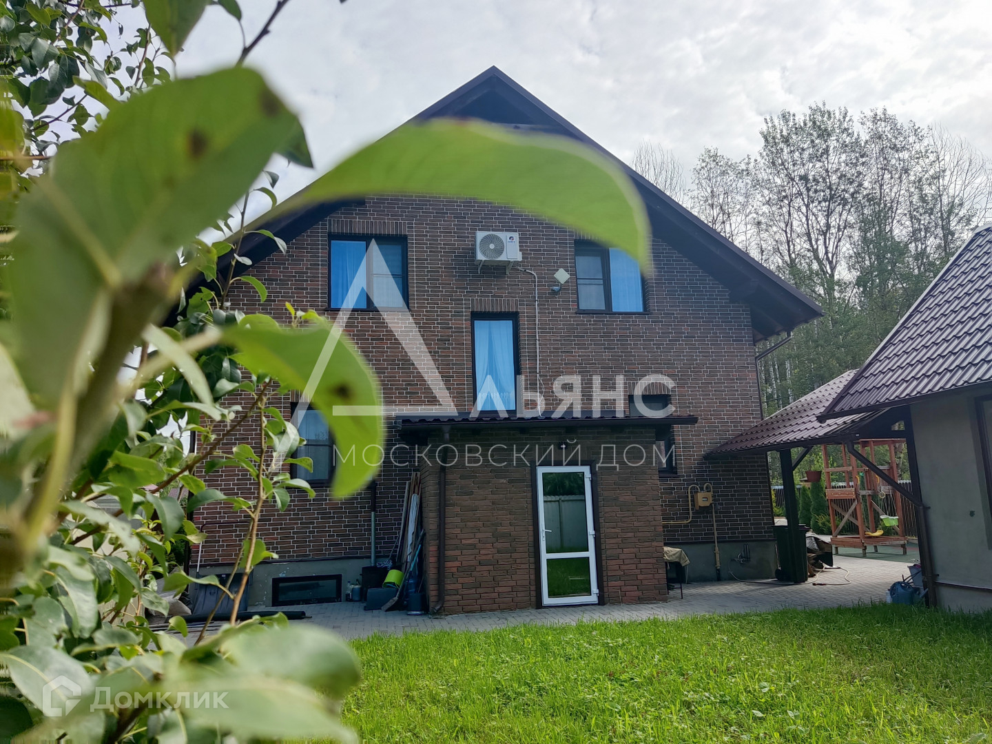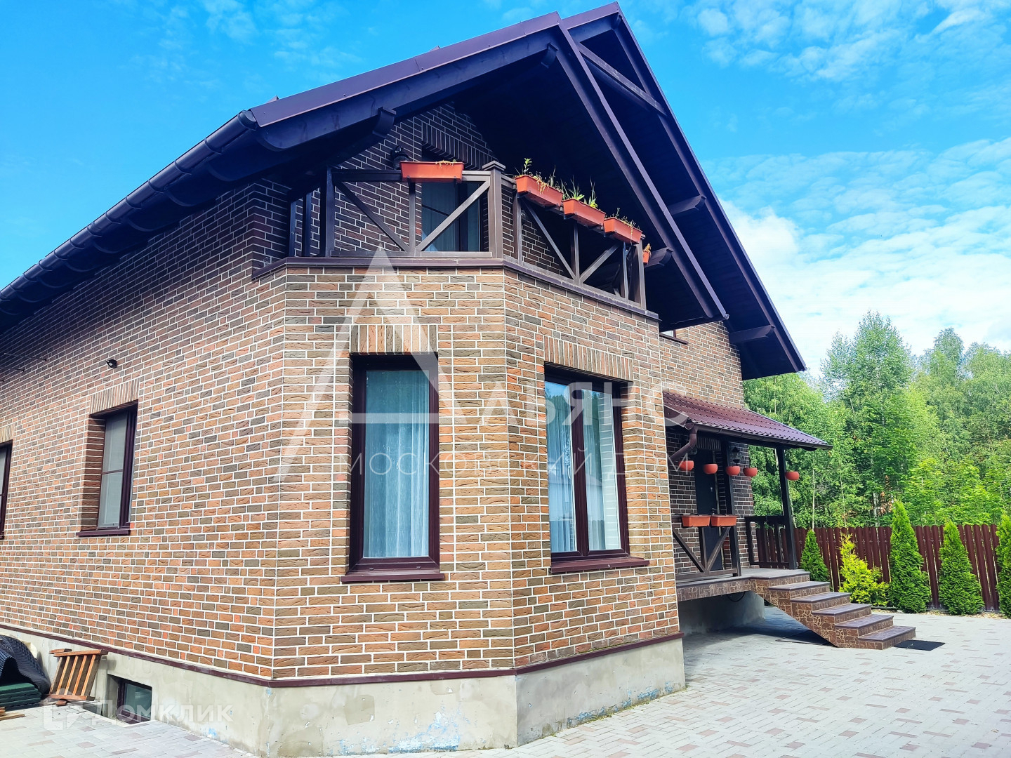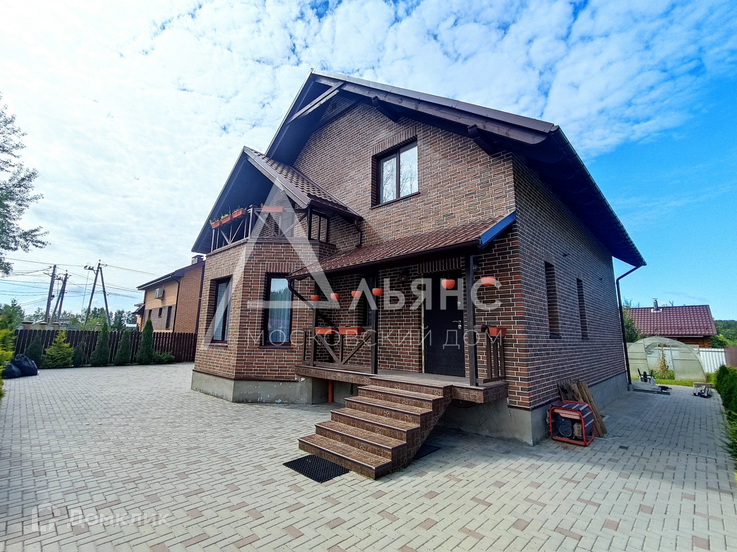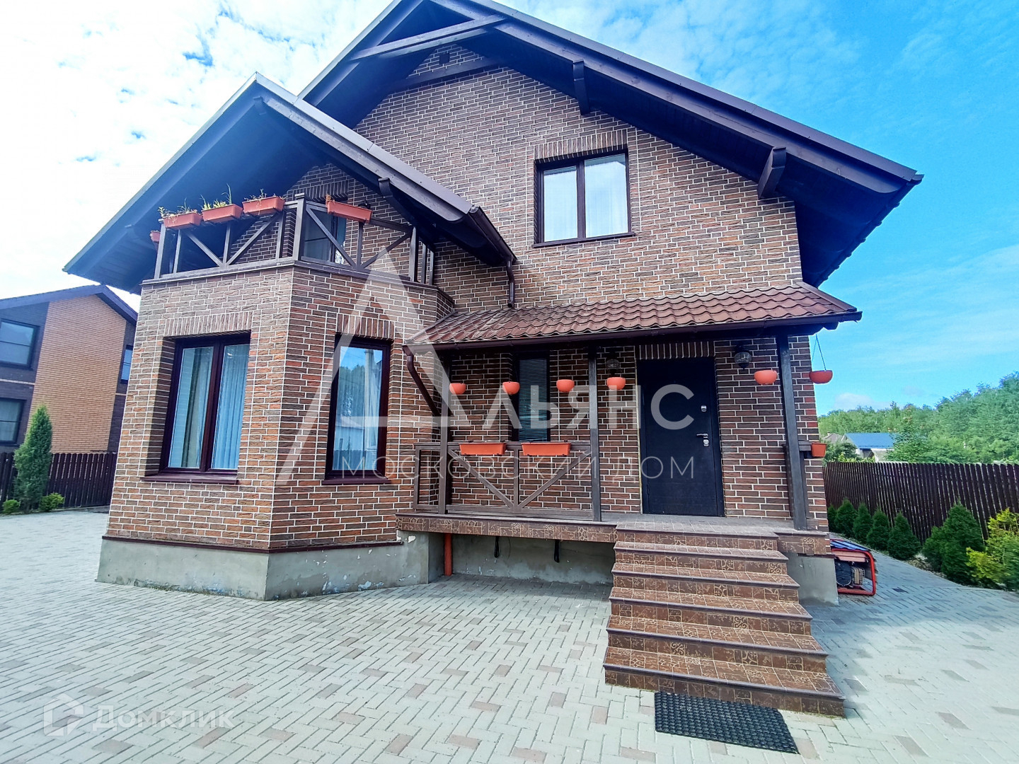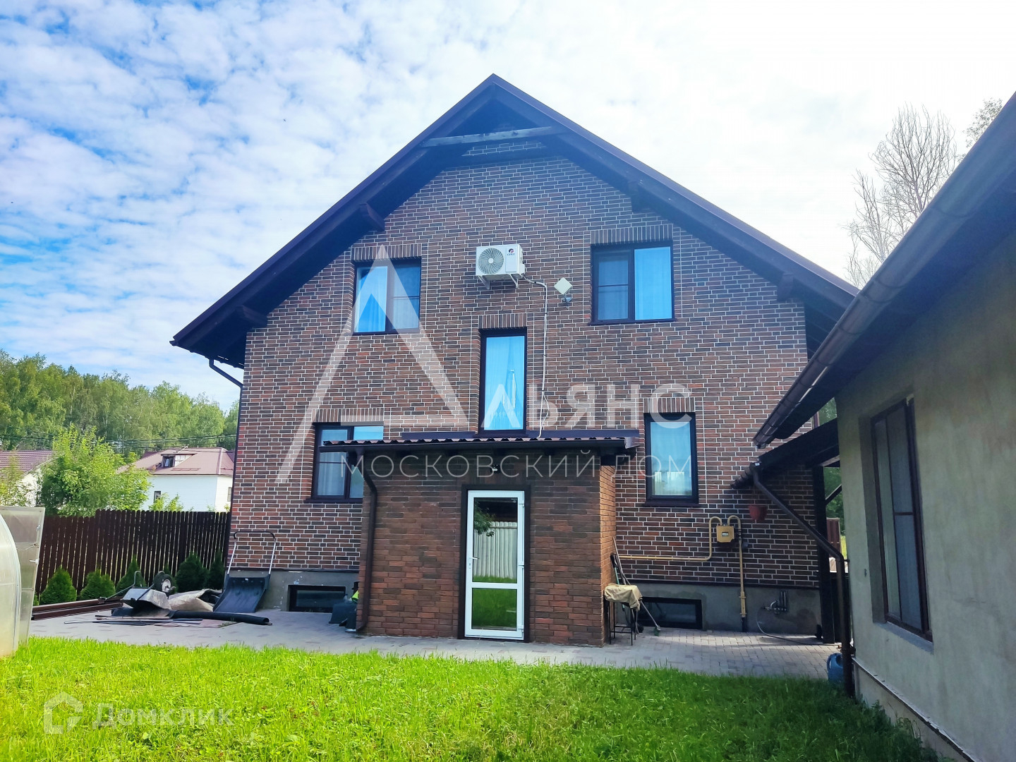Дом построен из блоков, обложен полнотелым кирпичом.