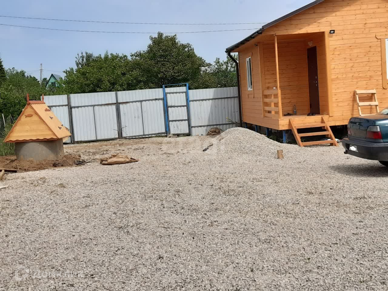 Участок отсыпан гравием, что избавляет вас от грязи, от постоянного покоса. Гравий всеглда можно убрать и разбить грядки. А строительный материал использовать.