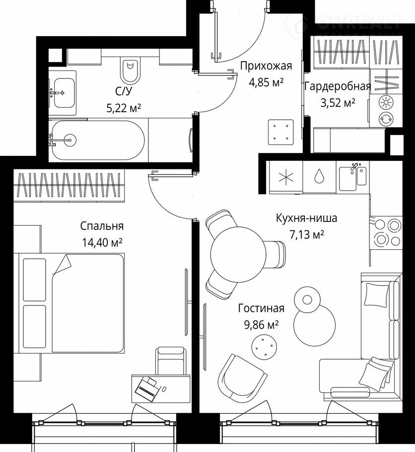 Общая площадь 45 м2