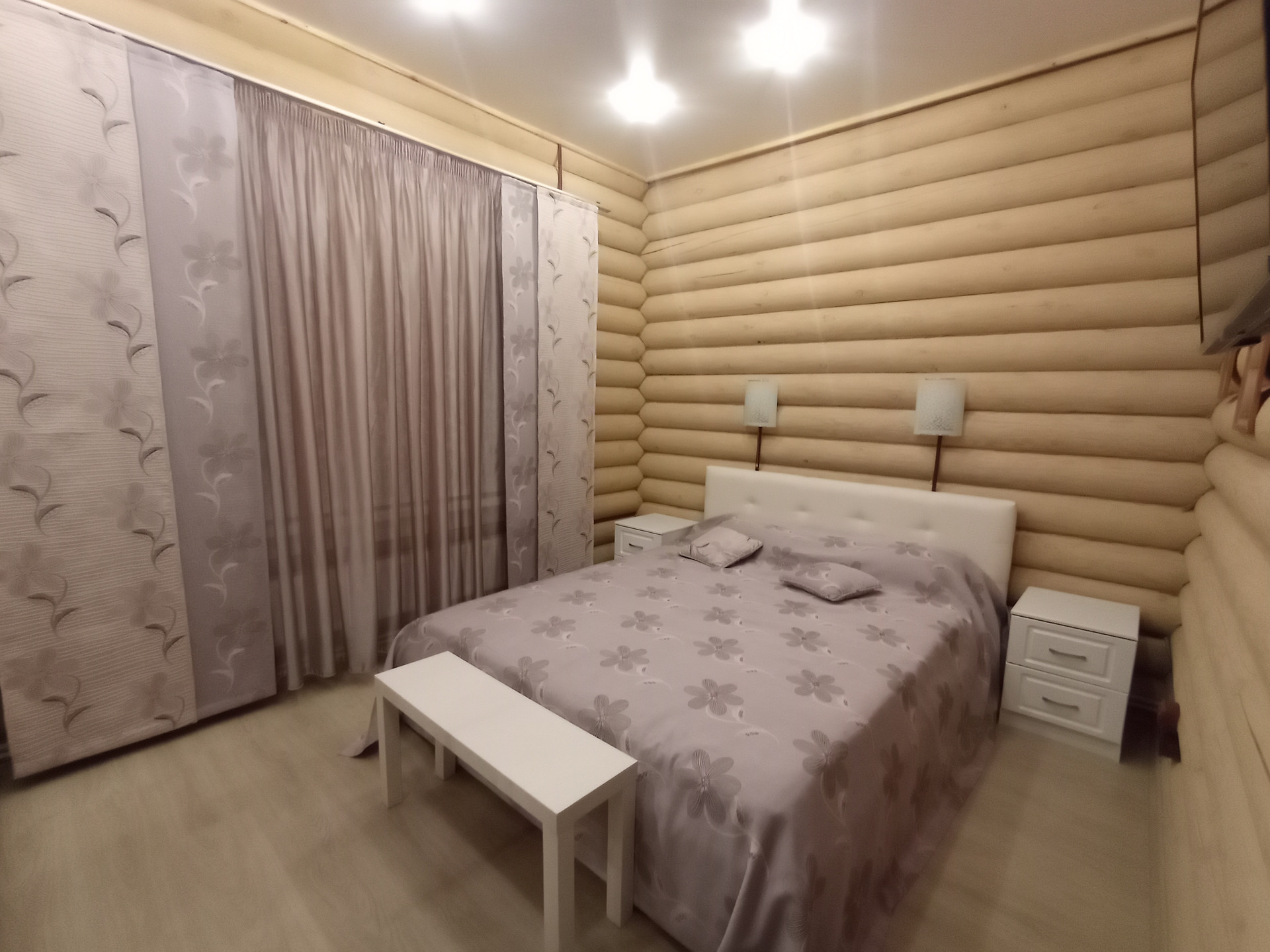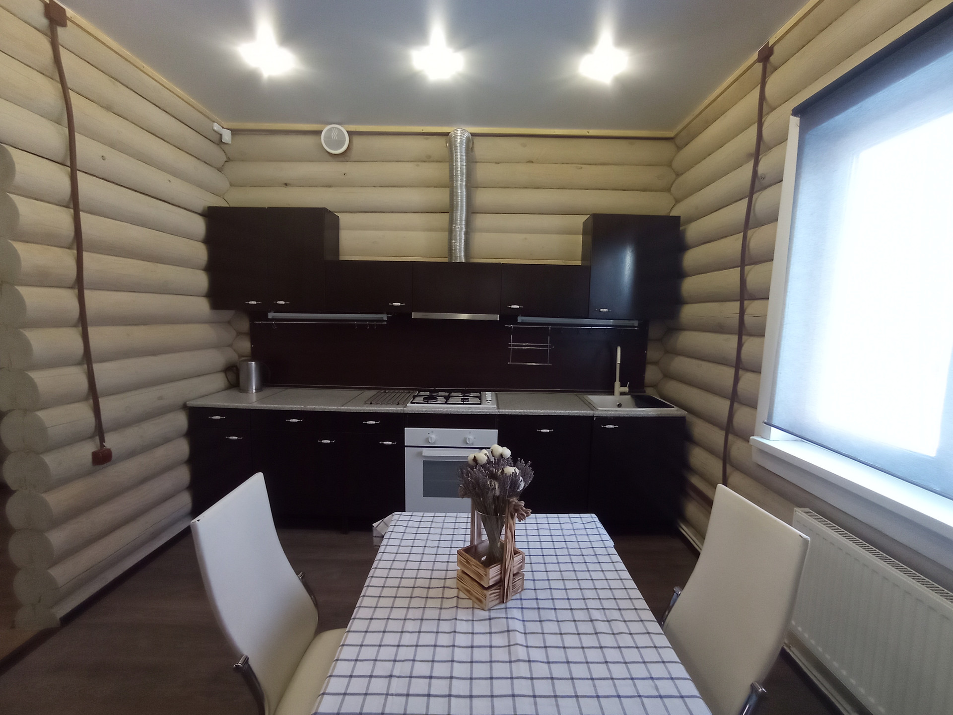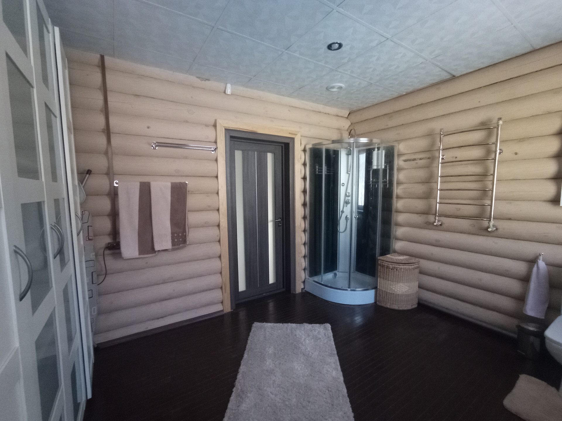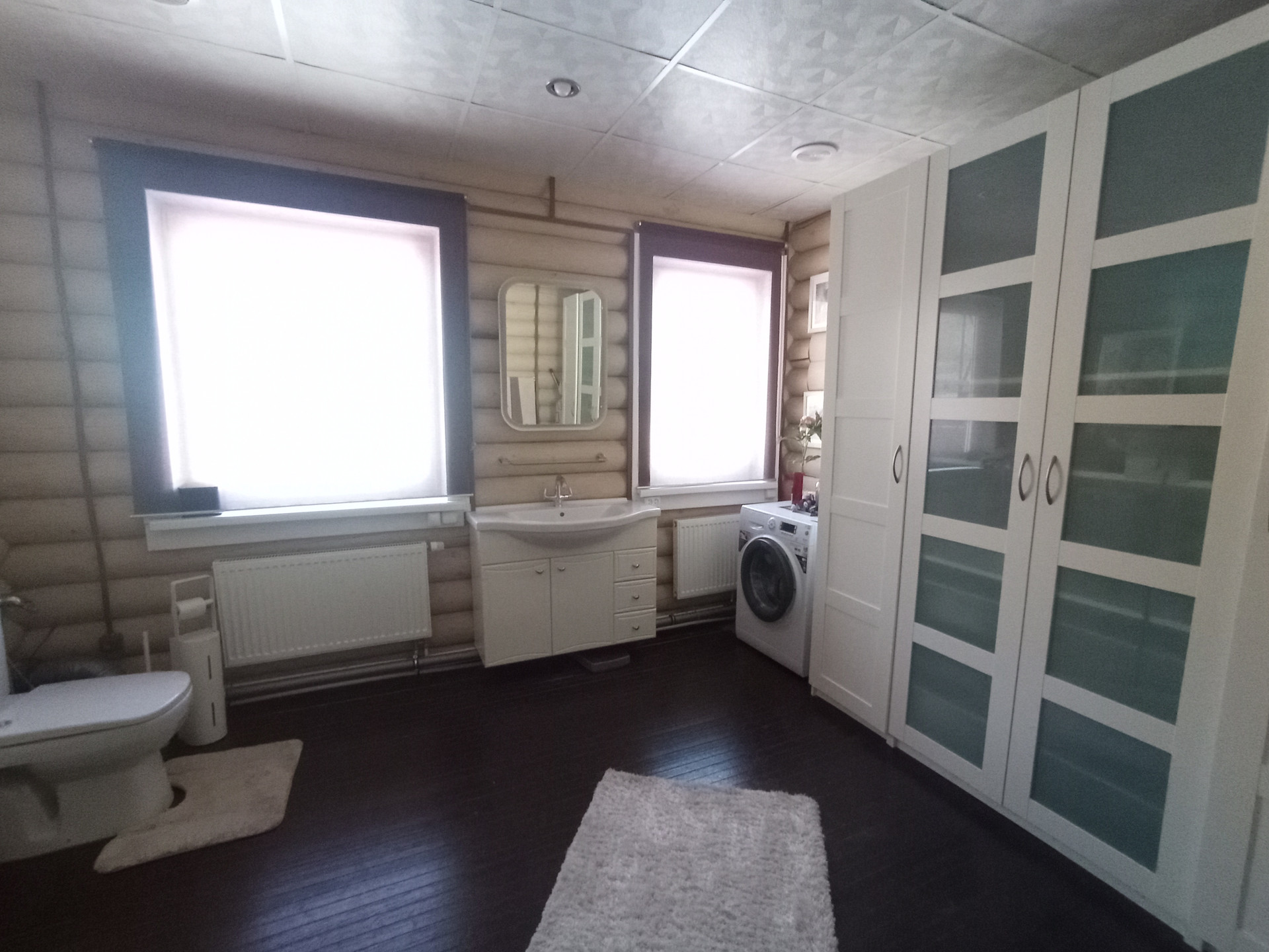 На первом этаже дома расположены: холл, гостиная с камином, кухня-столовая, жилая комната (спальня), сан.узел, веранда, прихожая (тамбур), тех. блок( котельная). На втором этаже дома расположены: холл, две жилые комнаты(спальня, детская), сан.узел. В доме сделан новый стильный ремонт. Окна пластиковые , 2-х камерные, на всех окнах установлены рольставни. Потолки: натяжные — в комнатах; влагостойкие панели — в холле, санузлах, веранде. Полы — ламинат, в санузлах — террасная доска. Полы утепленные. Дом со всеми удобствами. Все коммуникации заведены в дом. В каждой комнате установлены радиаторы. Отопление — АГВ; вода (из скважины) — в доме; канализация — автономная, септик — накопитель- 5 м3; электричество — 1 фаза 7кВт. В доме установлена охранная сигнализация.