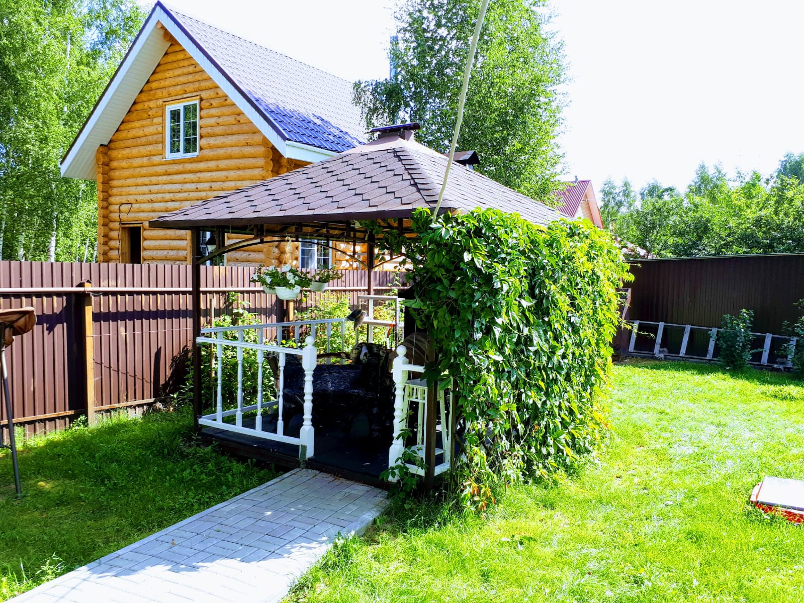 Дом расположен в Нижегородской области (Борский район, деревня Линдо-Пустынь, улица Новослободская). Расстояние от Нижнего Новгорода - 25 км . Дорога до деревни — асфальтовое покрытие, по деревне — щебеночное покрытие. На участке площадью 1000 м2 (10 соток) расположен жилой дом двухэтажный(170 кв.м.) 2014 года постройки: 1 этаж 91 м2 + мансарда 62 м2 +веранда 17м2.Материал стен — бревно оцилиндрованное диаметром 22 см, фундамент — железобетонный, свайный с ростверком. Участок по всему периметру огорожен забором из профнастила. На участке также расположены крытая беседка с мангалом, детский городок, качели, теплица, хоз.блок. Особого внимание заслуживает ландшафтный дизайн участка! Цветочные клумбы, зеленые лужайки, живые изгороди, крупные одиночные кустарники и фруктовые деревья создали уникальность, оригинальность и изысканность пространства!