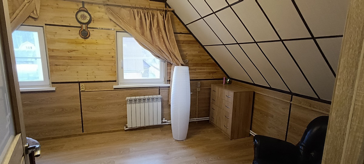 Продается жилой дом с возможностью прописки в д.Липино снт Прибрежный Дмитровского района Московской области. Дом двухэтажный, общая площадь 106 кв.м. Первый этаж построен из кирпича, второй каркасно-щитовой с утеплителем в 300 мм. Дом хорошо утеплен и имеет несколько способов отопления: теплый пол, отопление и печь. В дом заведена круглогодично вода из колодца, сделан переливной септик на два колодца. На первом этаже: гостевая комната 10 кв.м., кухня 6 кв.м., комната-зал с печью 20 кв.м., сан узел с душем . На втором этаже две комнаты12 кв.м. и 10 кв.м. Участок 6 соток , огорожен забором из проф.листа. На участке расположены: дом, баня, летняя кухня, хоз. блок, летний сан.узел. Баня одноэтажная, площадь 30 кв.м. В бане комната отдыха на 15 кв.м , душевая с сан.узлом и постирочной и парилка. В баню также заведены круглогодично вода и сделан отдельно переливной септик. Садовое товарищество окружено лесом и расположено на берегу реки Сестра, имеет свой выход к реке, зону для барбекю, причал. Идеальная тишина и свежесть воздуха, прохлада чистой речной воды, богатой рыбой, окружение смешанным лесом, грибами и ягодами сделает ваш отдых по настоящему комфортным. До города Дмитров ходят рейсовые автобусы. Время в пути на автомобиле до города Дмитров займёт минут 30-40, если поедете через паром по Дубненской дороге, будет быстрее. С Москвы удобнее ехать через Рогачевское шоссе, если не через паром. Магазины расположены в д.Липино. Деревня Липино расположена, максимум в 1 км от садового товарищества Прибрежный.