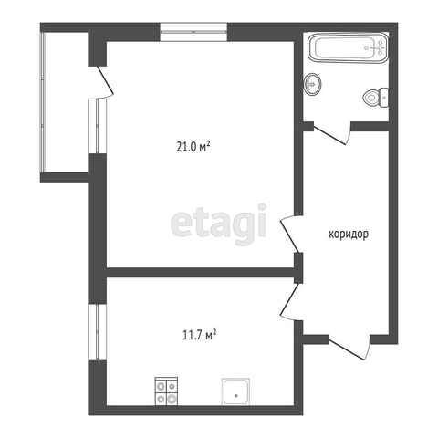 Общая площадь 41.3 м2