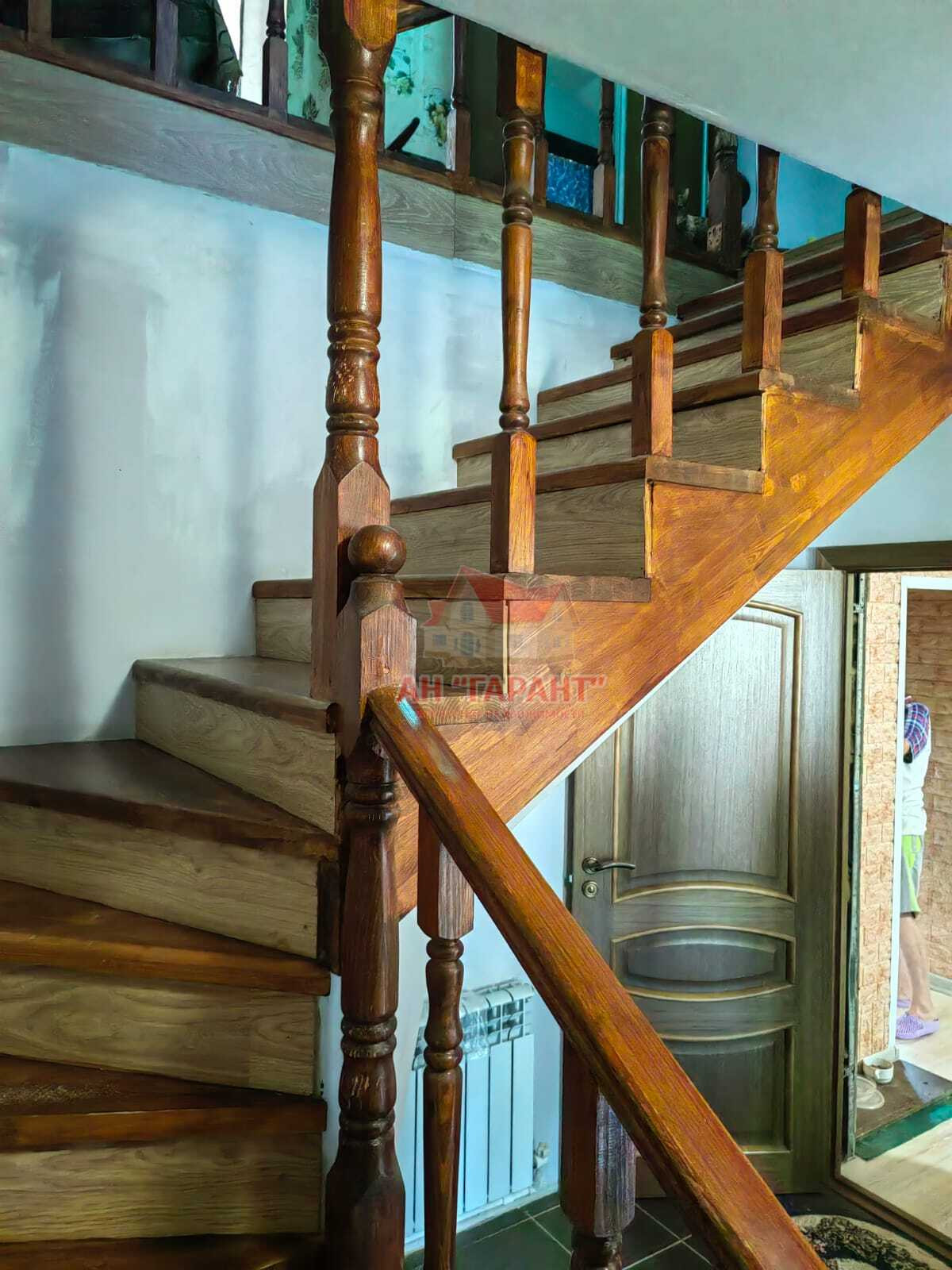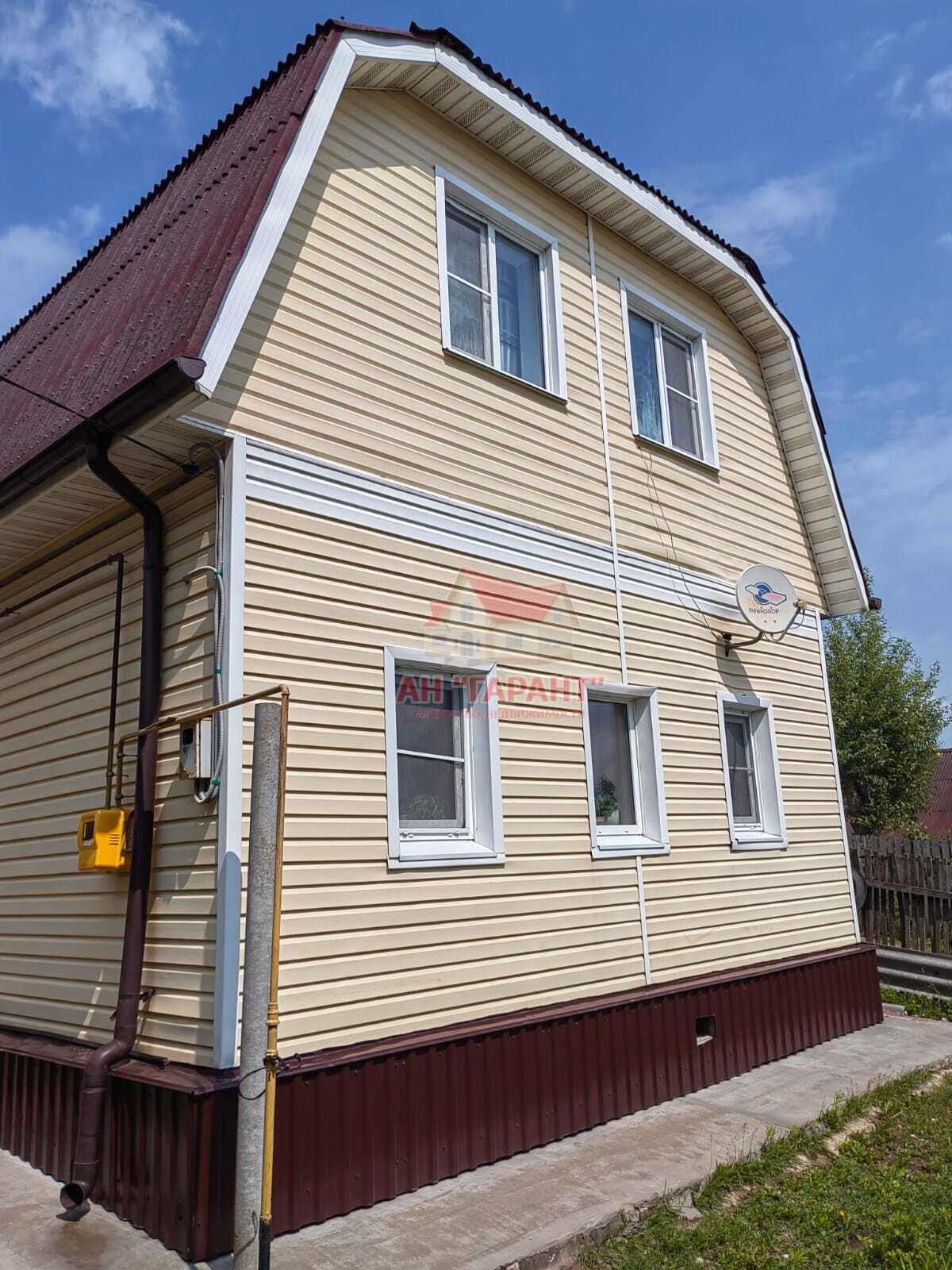 2-ух этажный, бревно + пеноблок, утеплён, обшит сайдингом, на ленточном фундаменте, по периметру дома отмостка с водостоками, крыша мягкая кровля.