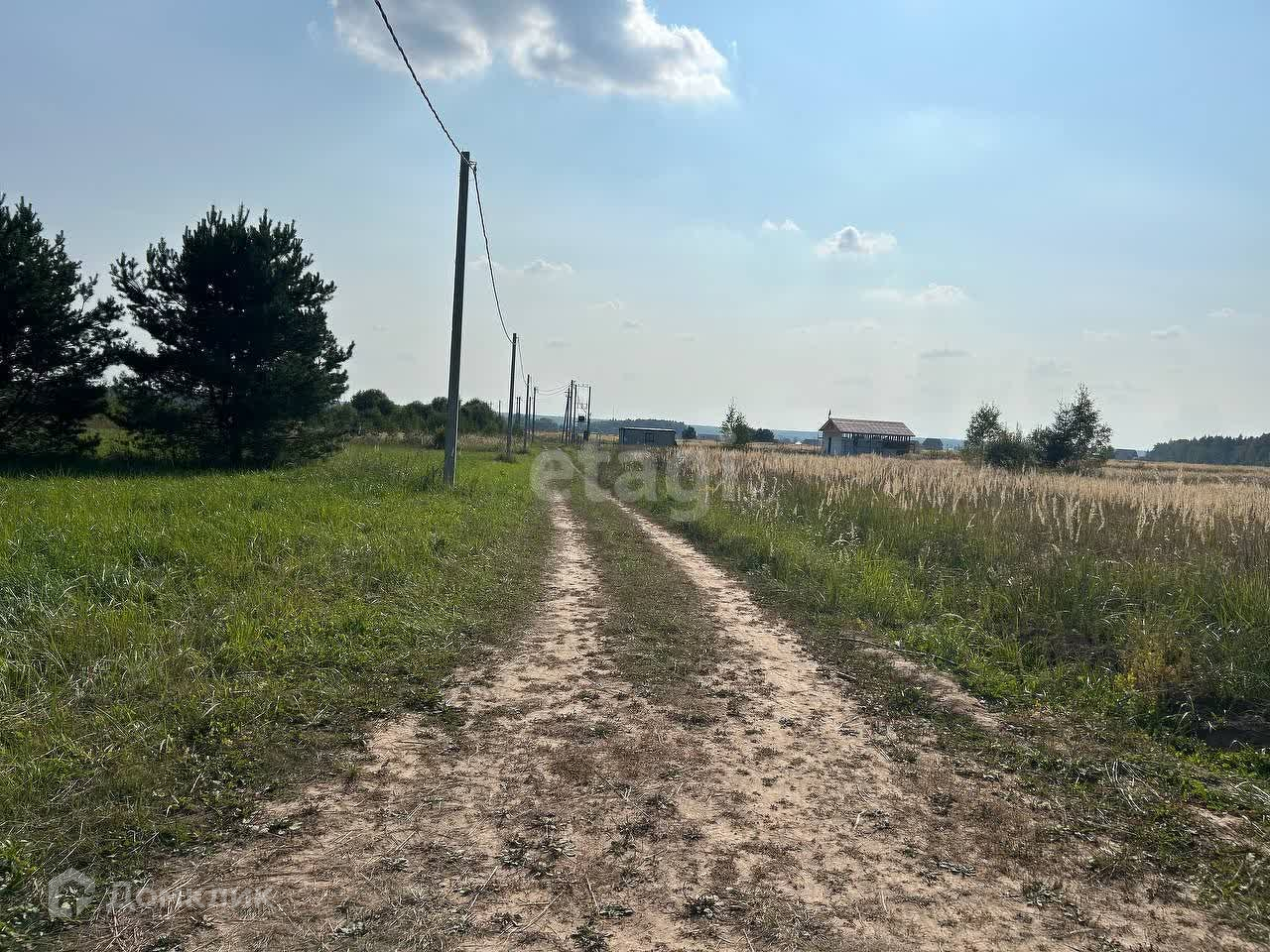 Участки размежеваны. Есть учатки с установленными столбами под электричество и проведенными проводами. Есть участки без подведенного электричества.