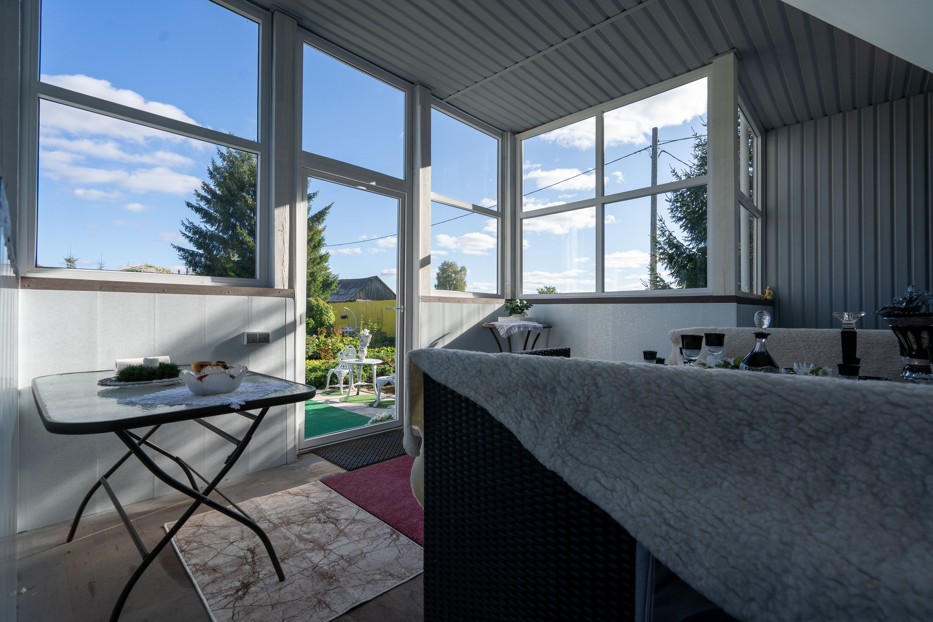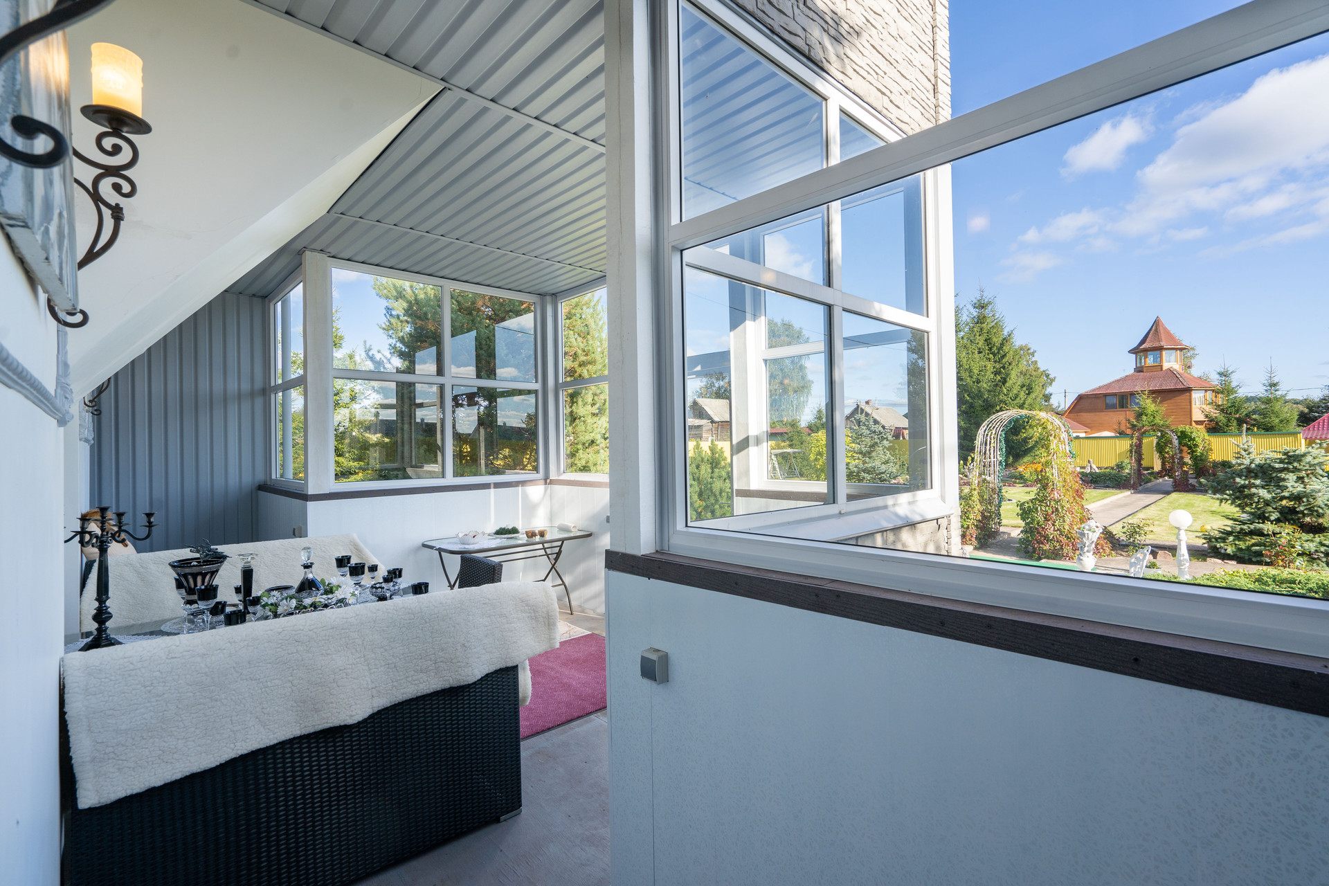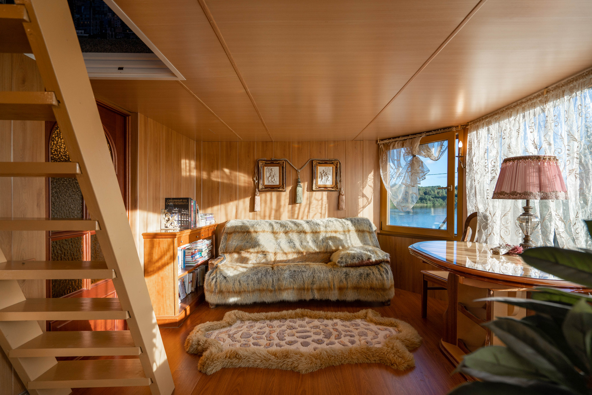 Парк и участок 21 сотка, плюс берег 4 сотки. Зимний дом 155 м², монплезир 60 м², гостевой дом 52 м², летняя кухня-гостиная 40 м² и два гаража.
