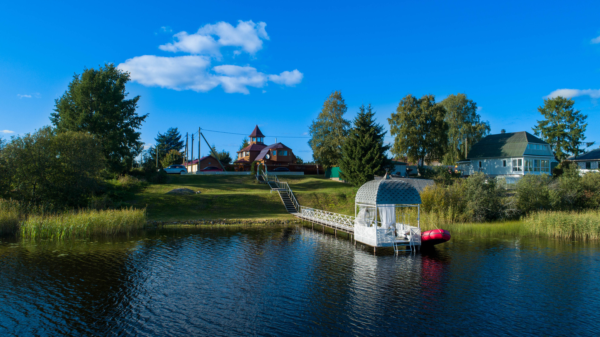 Свой берег озера с пирсом, дизайнерский парк с голубыми елями и соснами, газонами и розами, монплезиром и разнообразно оформленными уголками отдыха наполняют вашу жизнь ощущением истинного полноценного счастья.