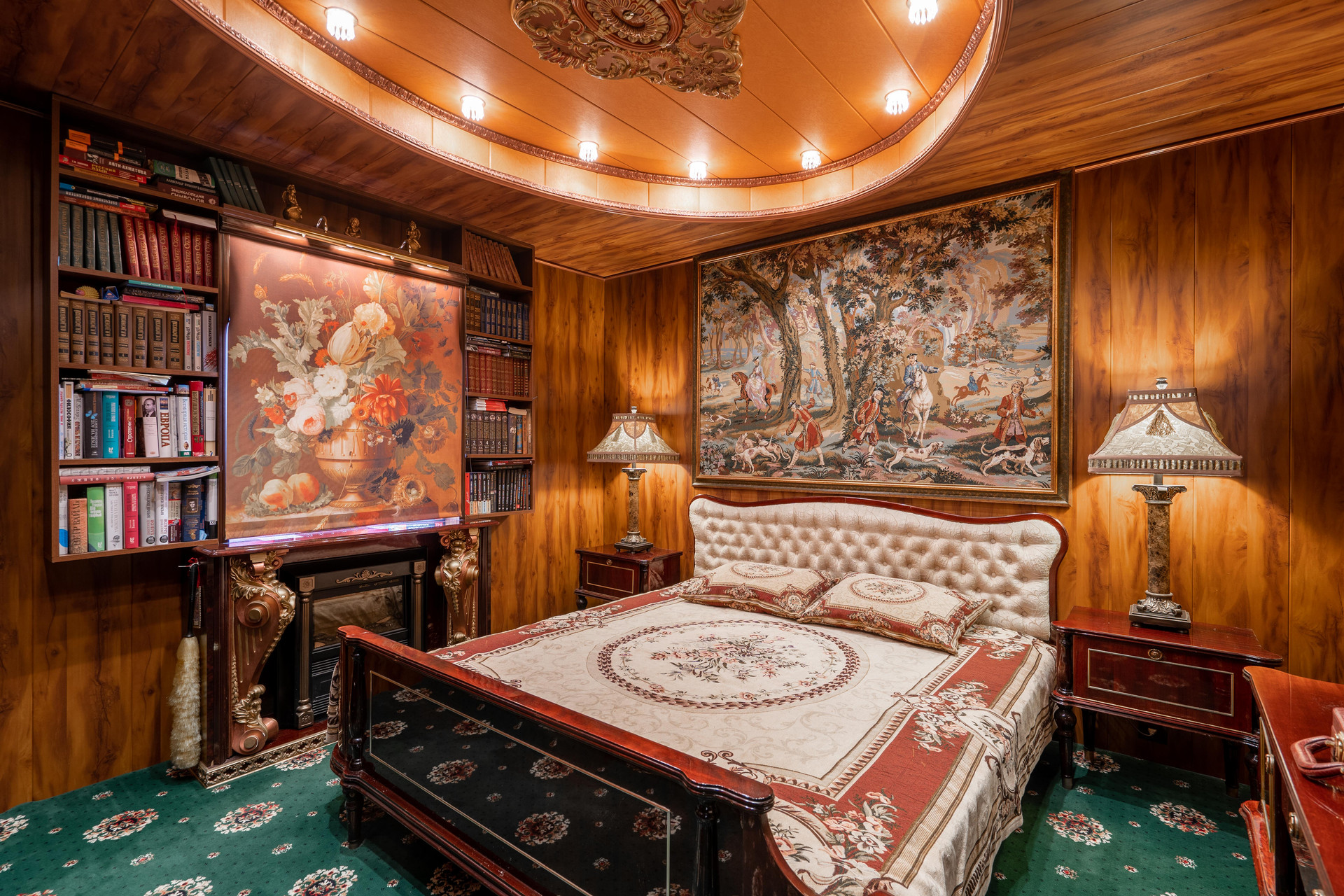 Винный погреб, смотровая башня, четыре спальни, два камина, библиотека.
