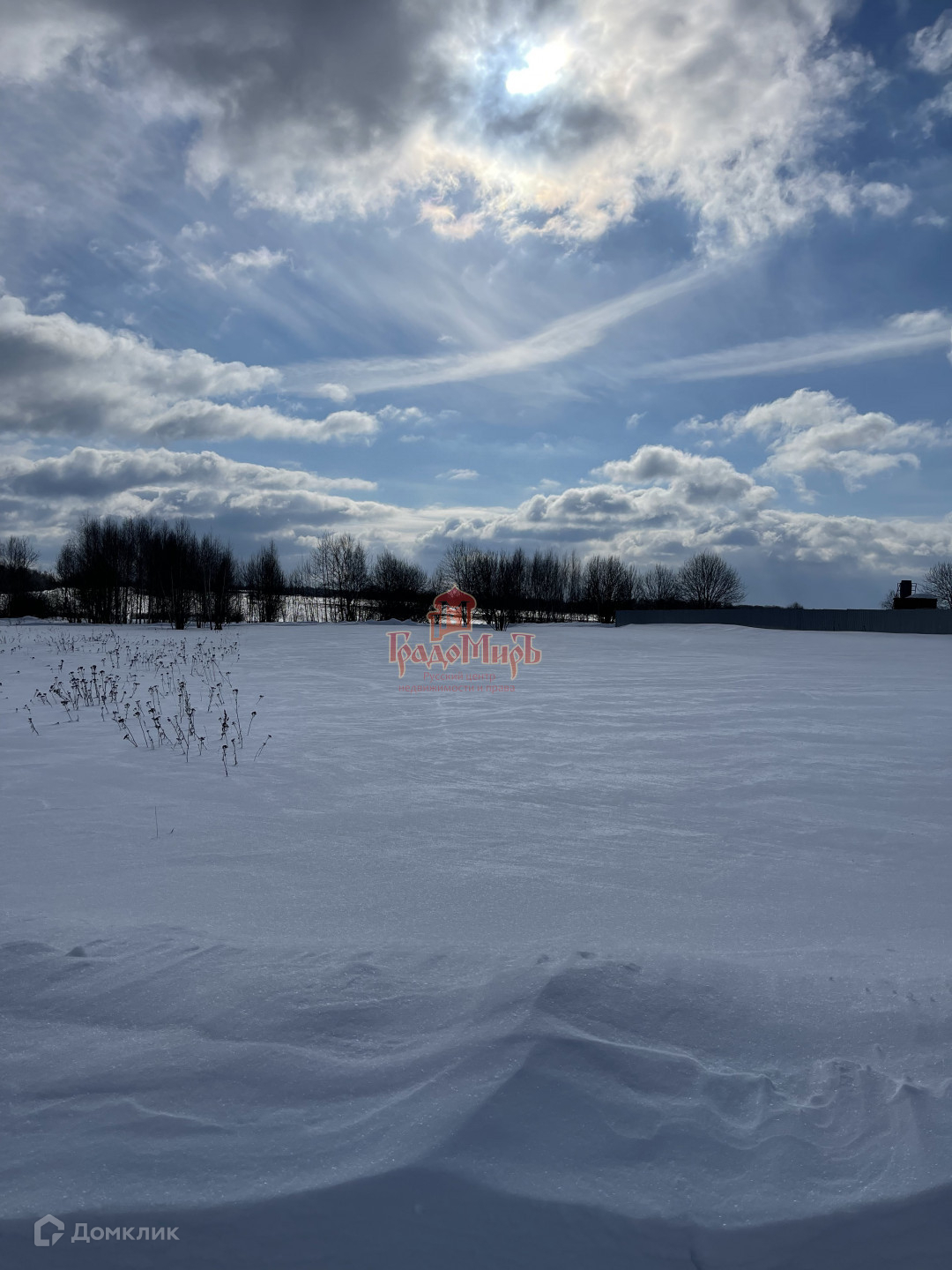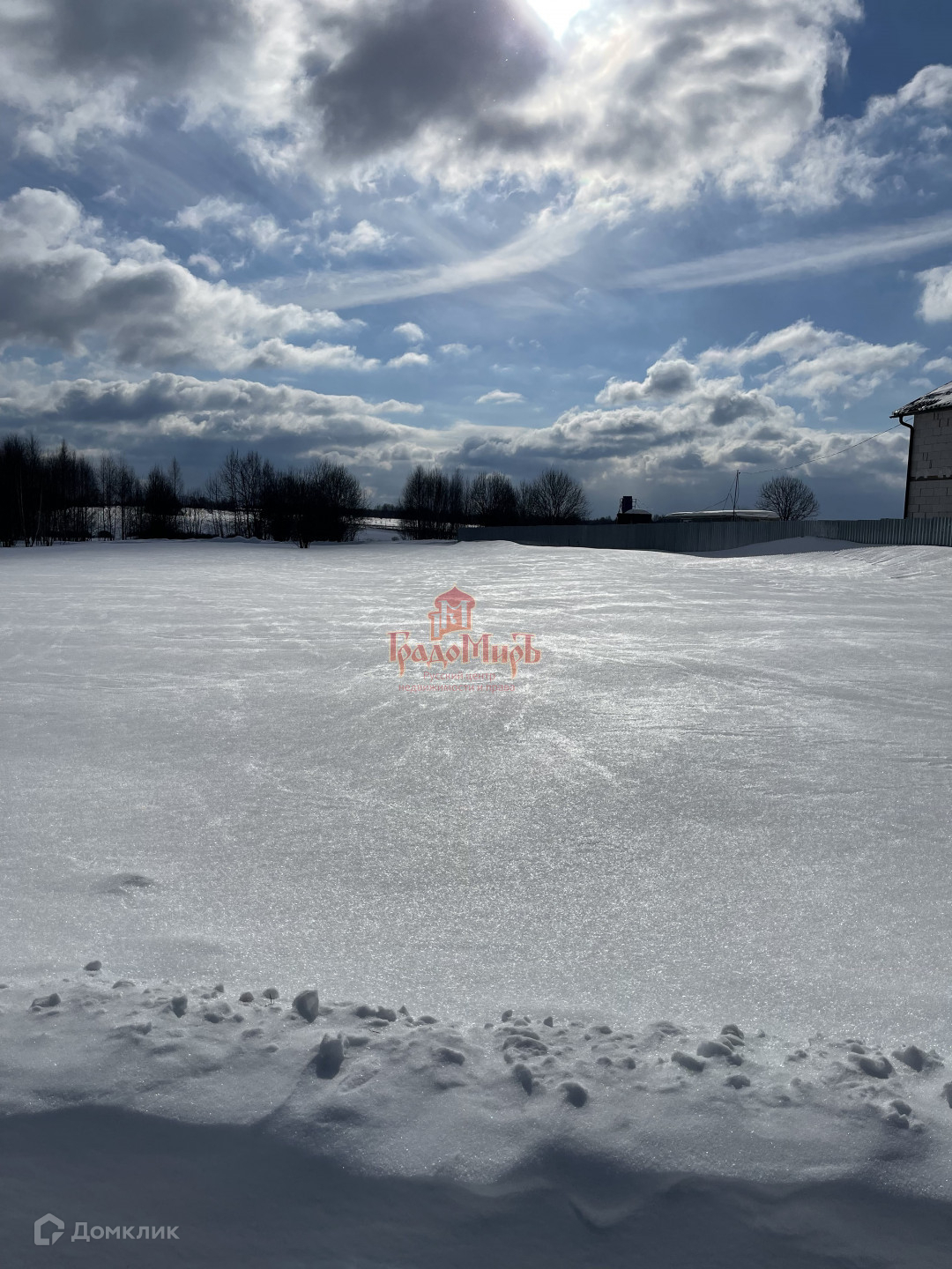 Участок не огорожен, электричество и газ идут по границе.
