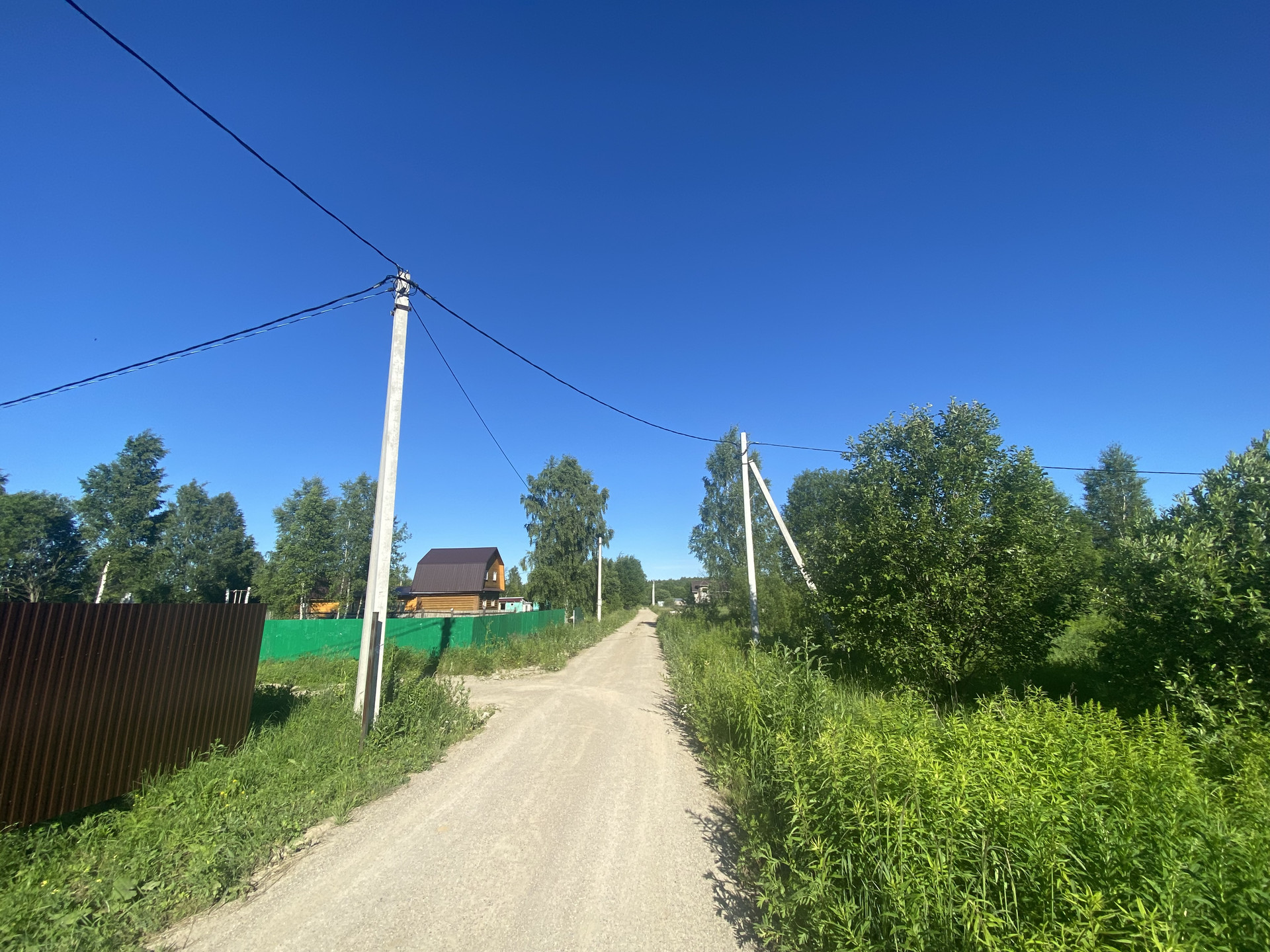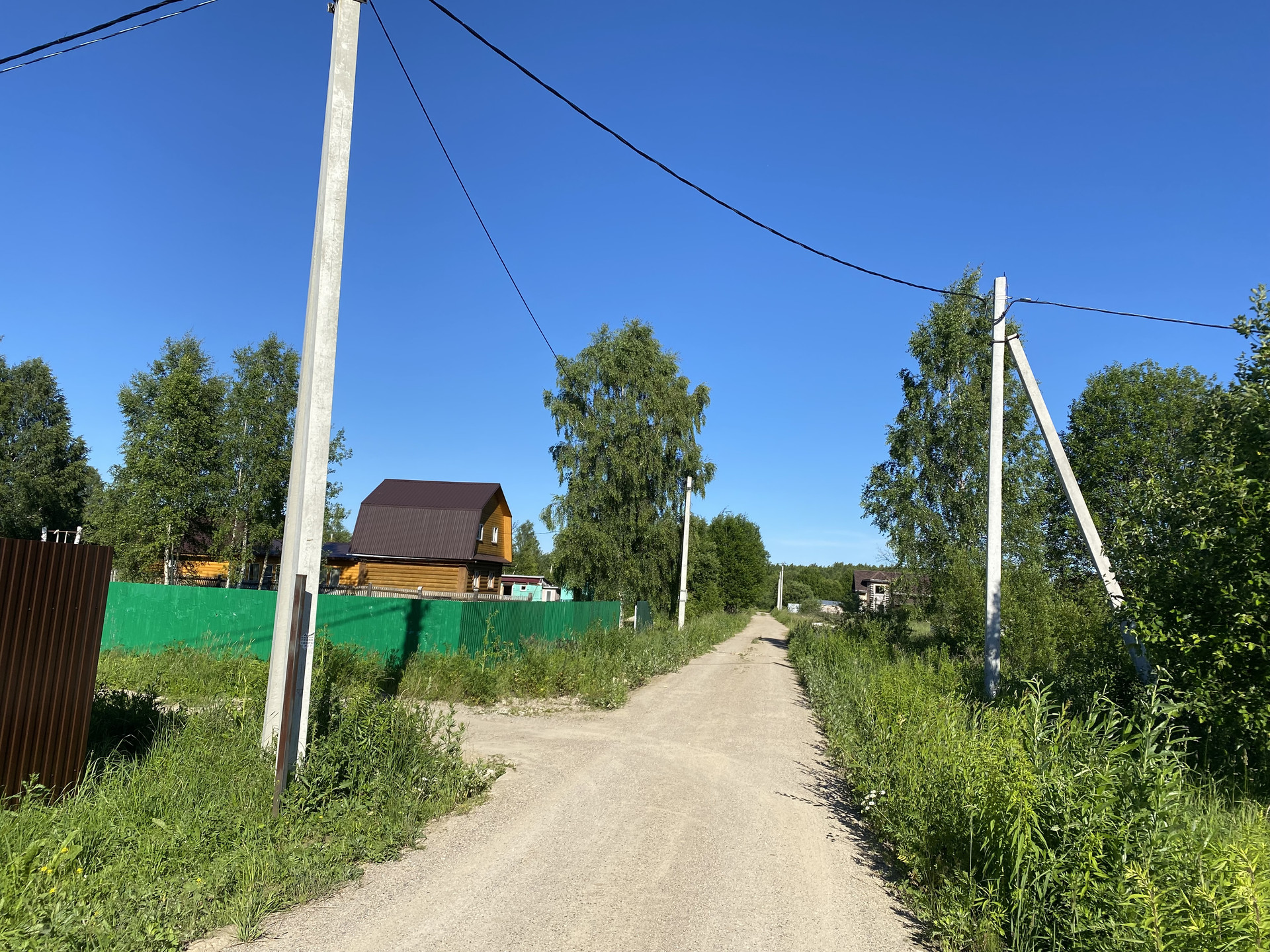 В деревне ГАЗ, вдоль участка, ЭЛЕКТРИЧЕСТВО на столбах вдоль улицы
