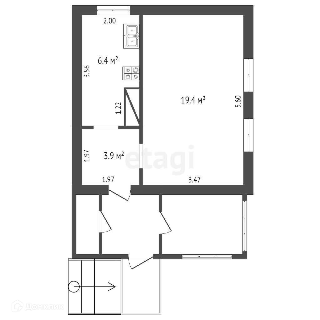 Общая площадь 29.7 м2
