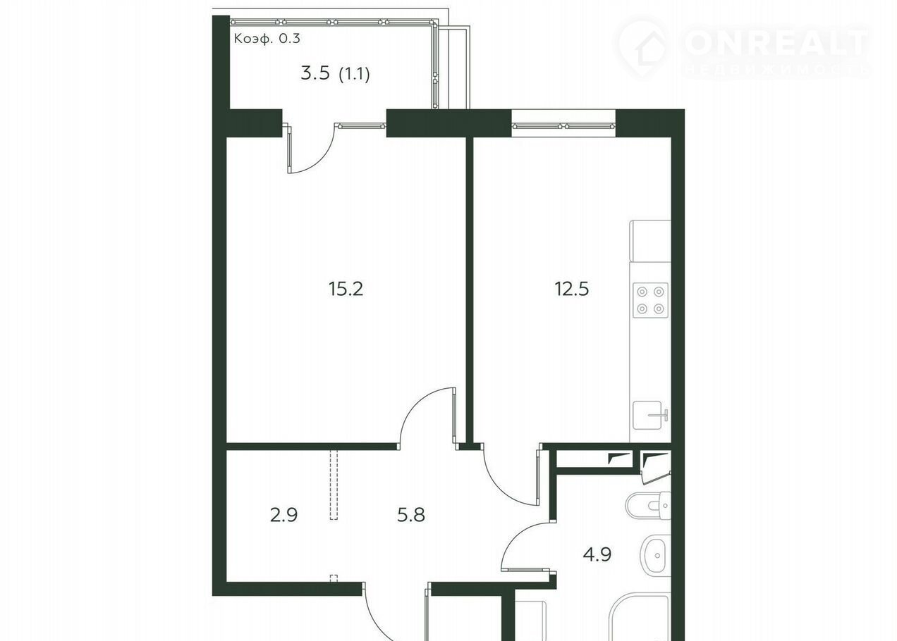 Общая площадь 42.4 м2