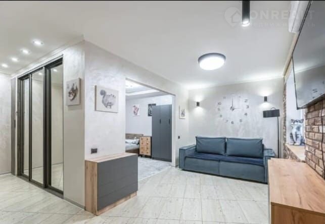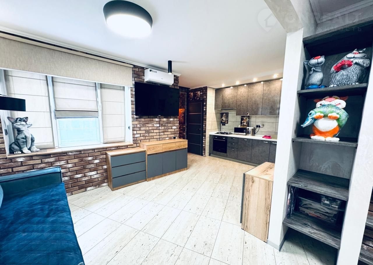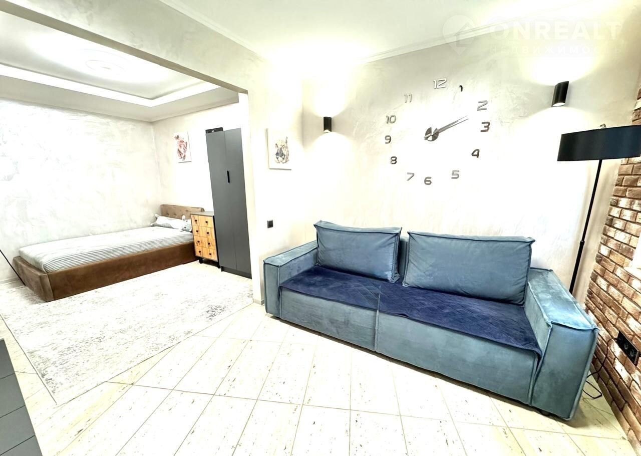 Большая студия, свободная планировка.Высокий первый этаж. В квартире все продумано до мелочей. Удачно разделена зона кухни, гостинной и спальни, просторный коридор, кладовка, где удачно расположился газовый котел и стиральная машина -качественный ремонт и дорогих, экологически чистых материалов; санузел совмещен, просторный, а также большая душевая кабина-сантехника вся из качественных материалов.