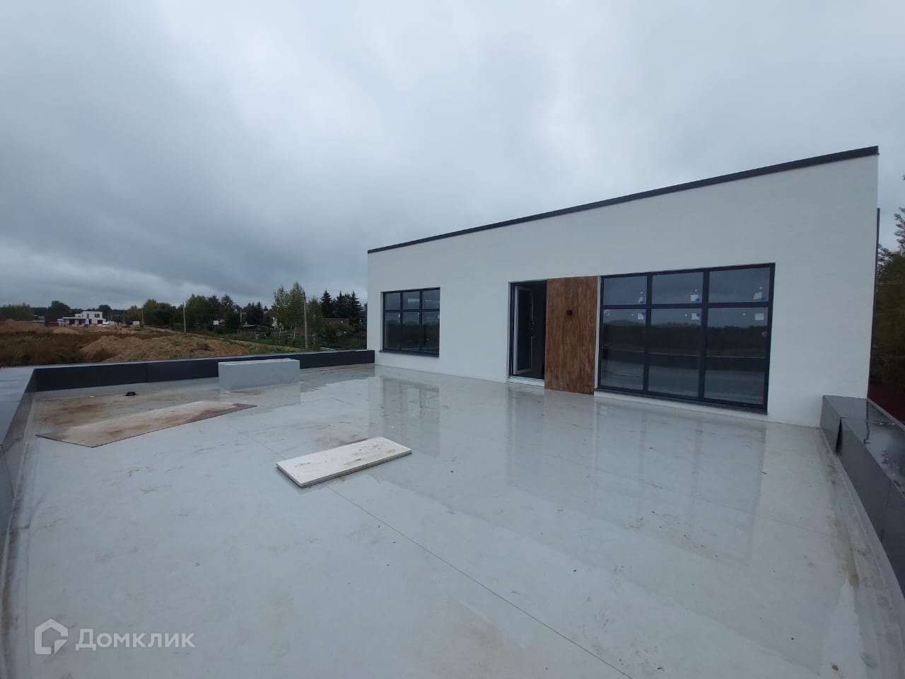 По периметру дома выполнена отмостка. Участок выровнен, с небольшим уклоном - для естественного ухода воды.