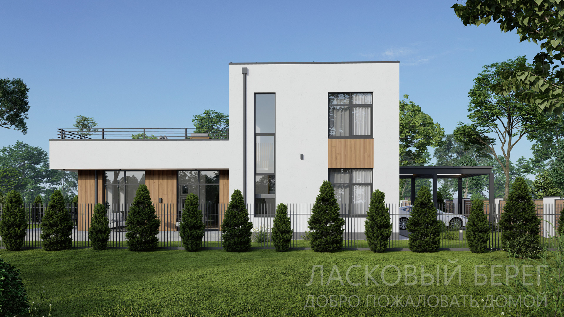 Расположен в клубном поселке всего на 20 домов, выполненных в едином архитектурном стиле, огороженная территория, организованный въезд через шлагбаум, круглосуточное видеонаблюдение, наличие всех коммуникаций, уникальное природное окружение, удобная транспортная и инфраструктурная доступность.