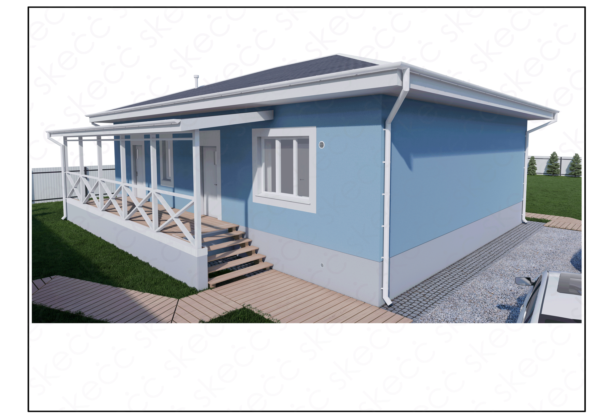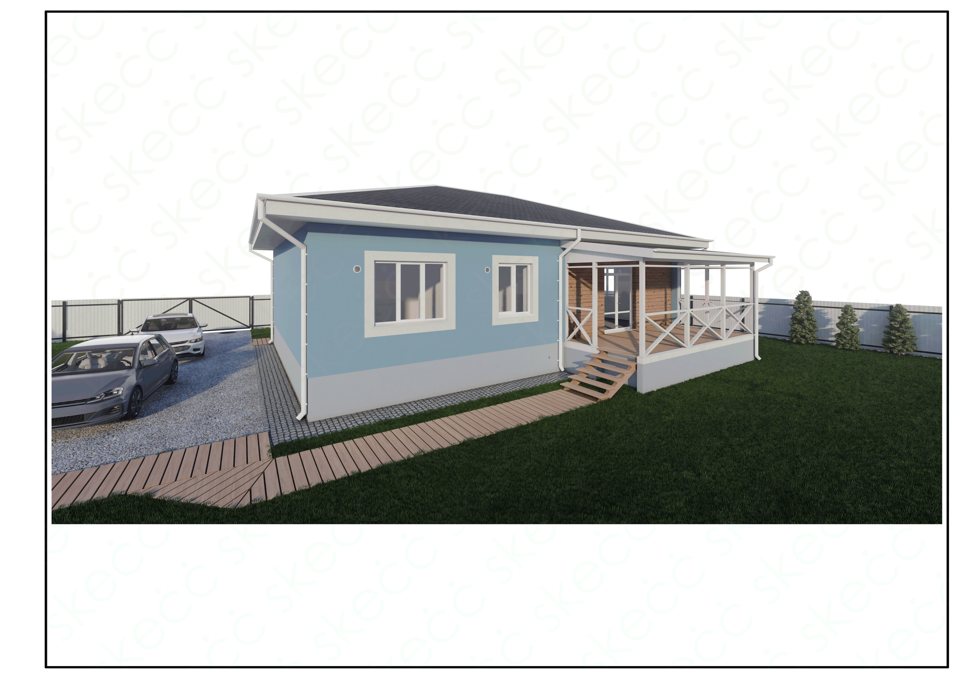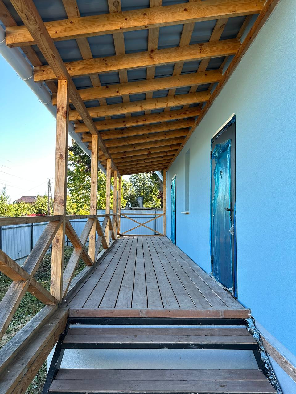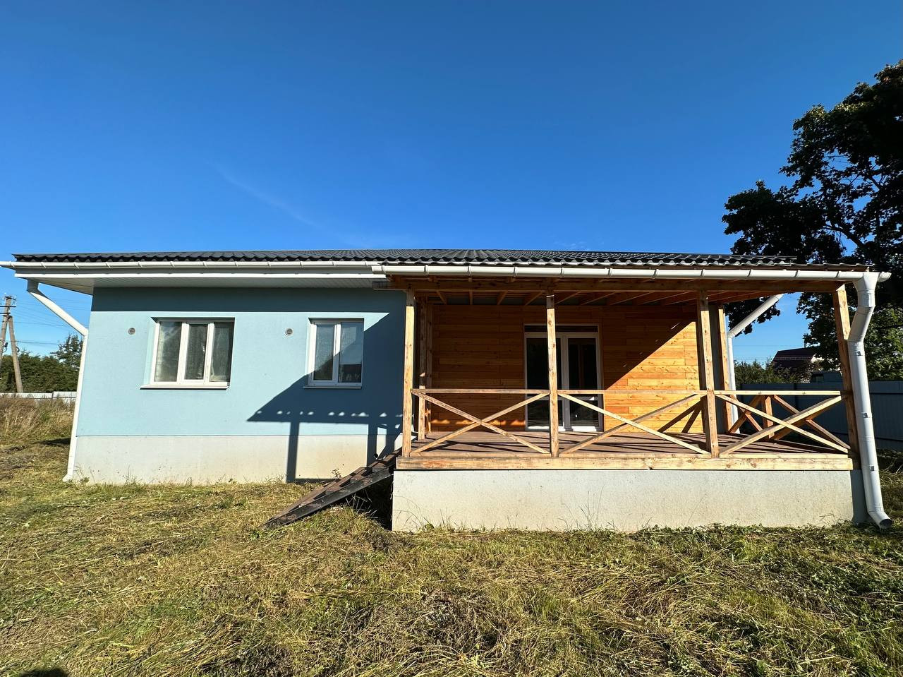 Дом выглядит очень эстетично и гармонично, выполненный в сочетании голубого и серого цветов. Участок ровный и огороженный профнастилом, имеет место для парковки и возможность для ландшафтного дизайна. Вы можете посадить свой собственный огород или цветник, построить беседку или баню. Рядом с домом есть магазин первой необходимости, а также ходят автобусы до города (маршруты - 115, 129, 130).