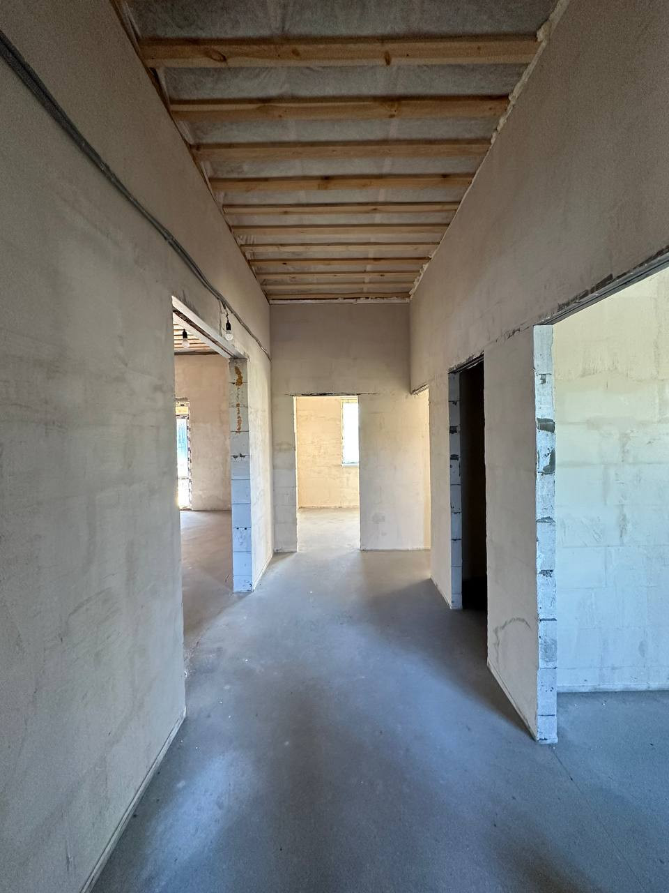 Дом подключен ко всем необходимым коммуникациям: вода из скважины глубиной 15 м, канализация из септика с 2 переливными колодцами и дренажной камерой, электричество 3 фазы 15 кВт. Также заключен и полностью оплачен договор на газофикацию и внутреннюю разводку с подключением котла отопления.