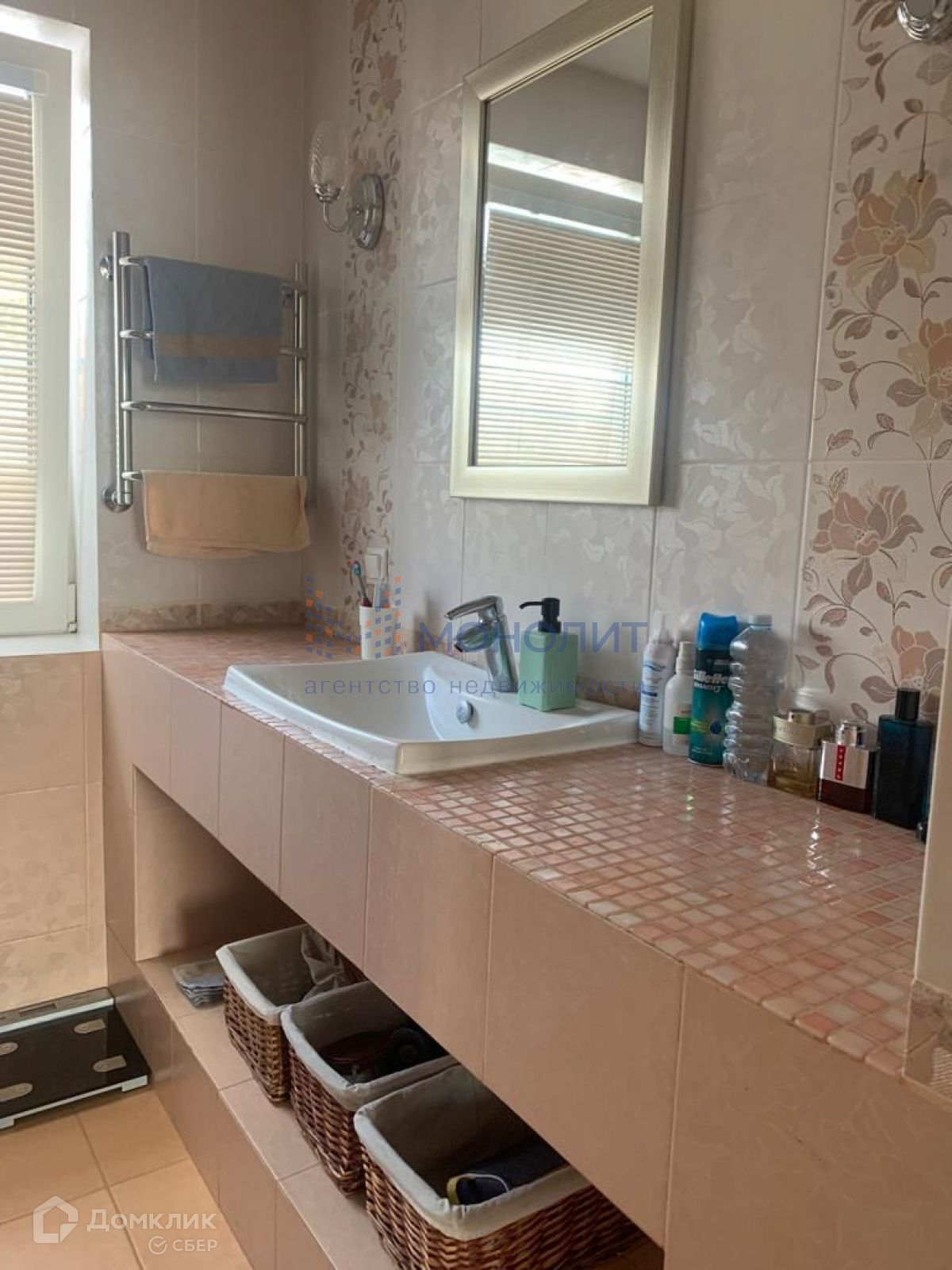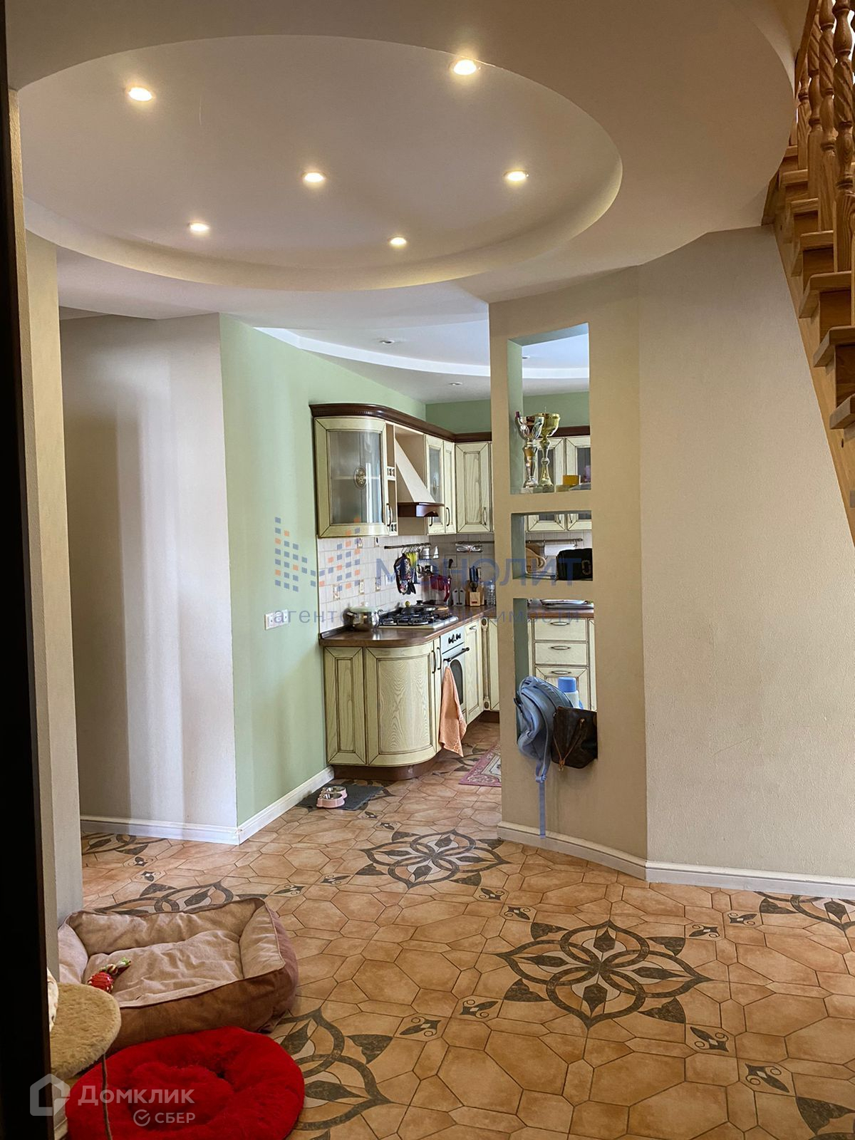 Монолитные стены +утеплитель, внешняя и внутренняя отделка высокого качества.  300 м 2 жилая зона, 140 гараж, баня и гостевая)на первом этаже-кухня-гостинная, кабинет, спортзал, ванная, на втором этаже - родительская спальня с гардеробом и большим балконом, две детские спальни, третий этаж - мансарда, игровая , также первый этаж продолжается- гараж, баня, душевая и гостевая .