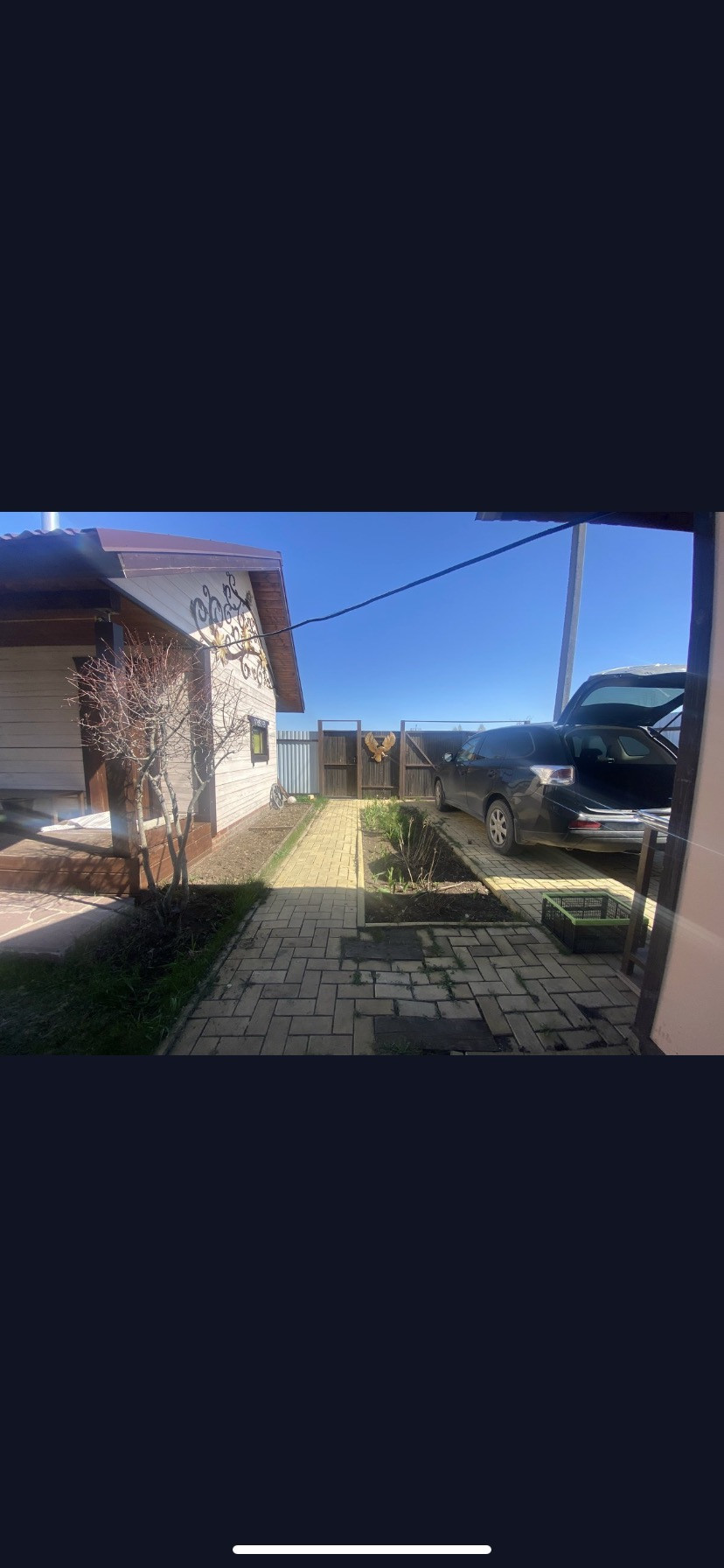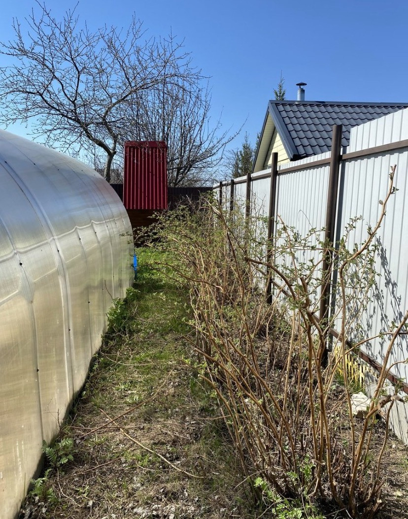 Участок ровный, угловой, 5 соток. Огорожен забором из профнастила. Парковка для гостей напротив участка.