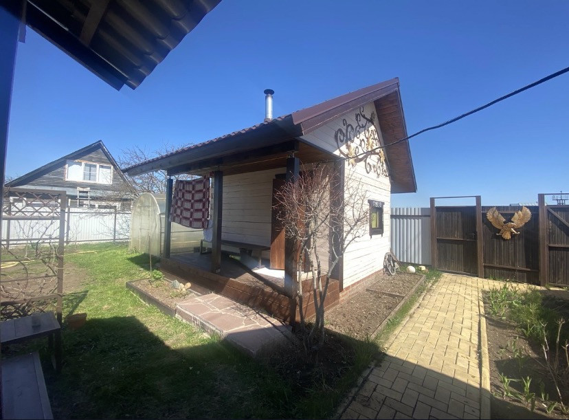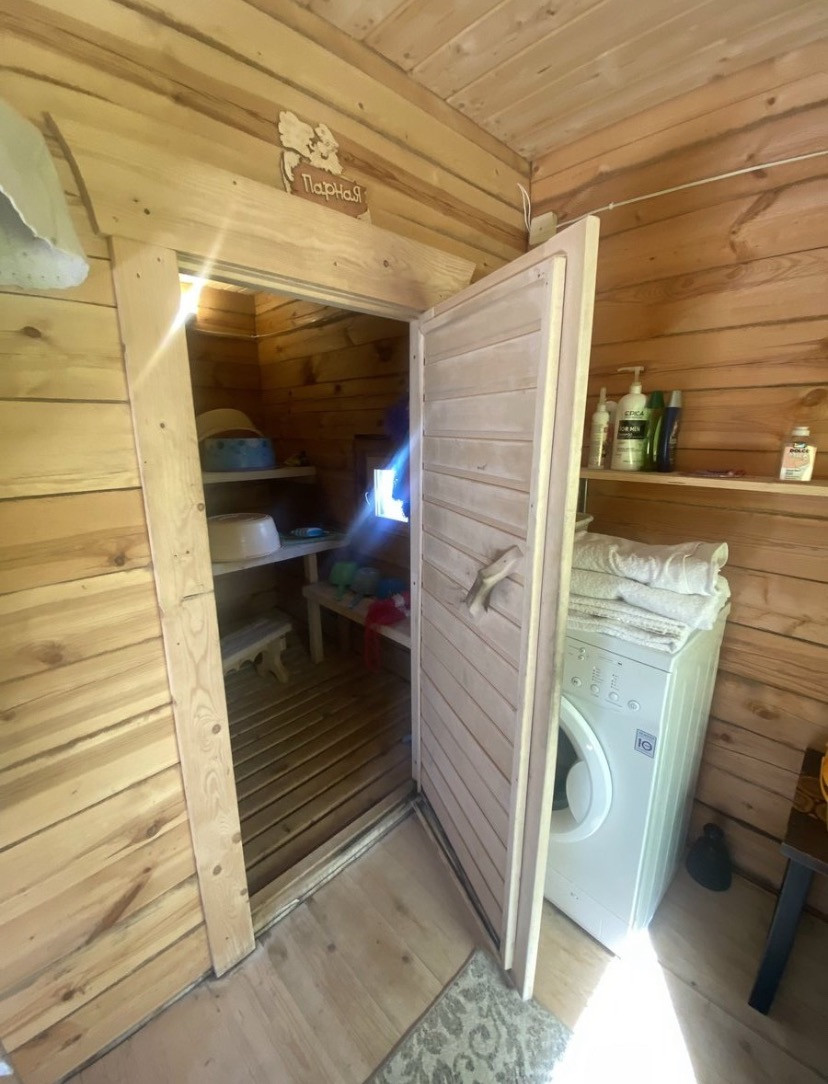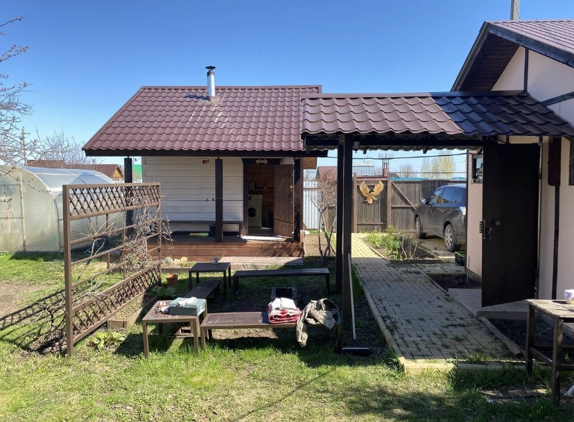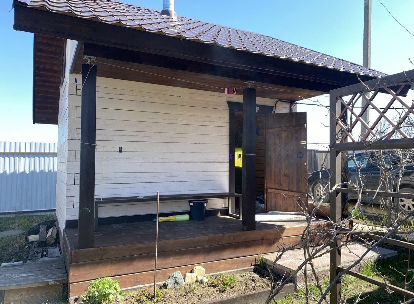 Новая баня - терраса, предбанник, моечная-сауна. На участке 2 теплицы. Хороший большой сарай с мастерской.