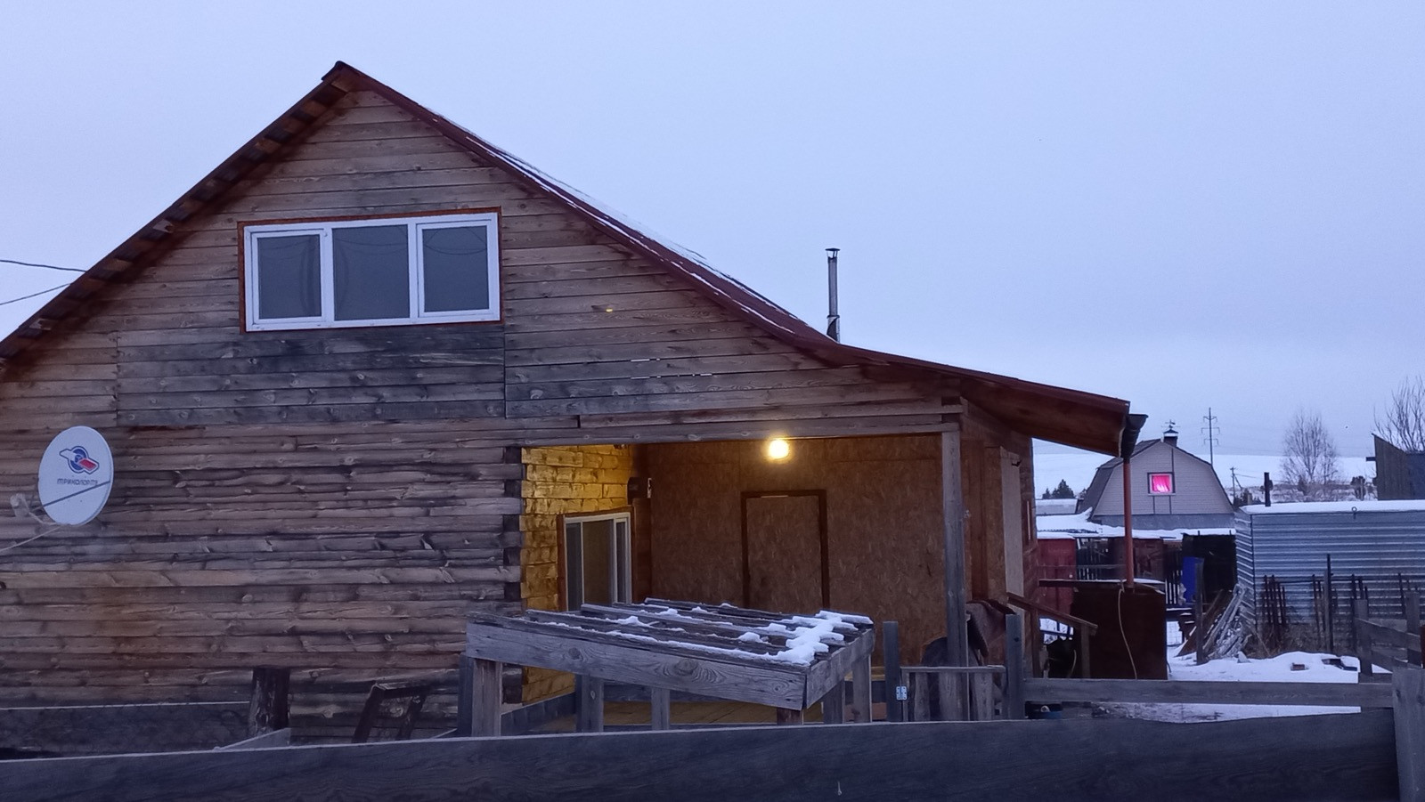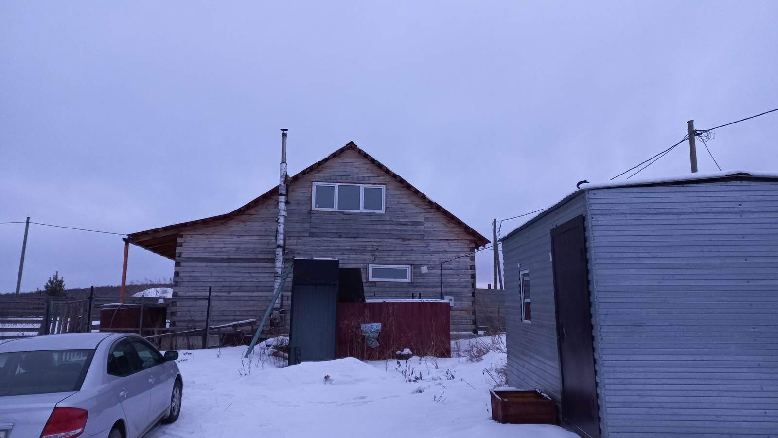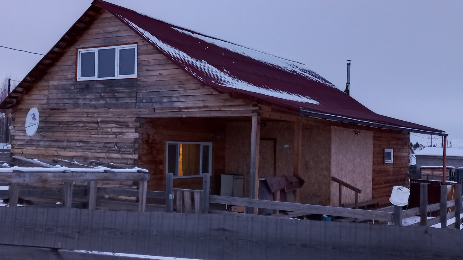 Дом расположен на садовом участке 10 соток, со стороны дороги огороженный 2-х метровый забором из дерева.