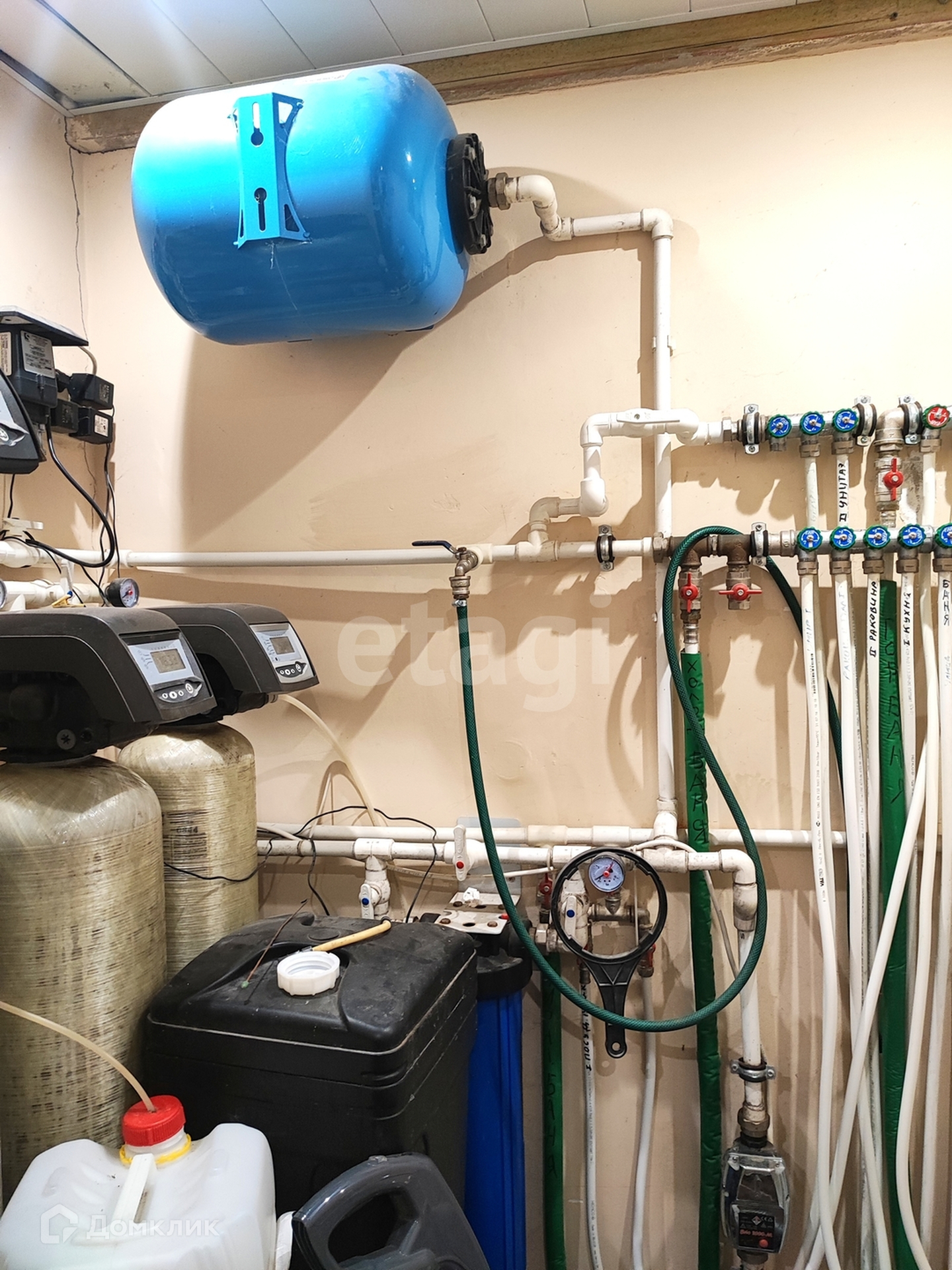 Отдельного внимания заслуживают системы отопления и водоснабжения. Всей технической частью заведует автоматика. Помимо систем отопления в доме установлена серьезная система водоподготовки, с фильтрами, минерализаторами и тп.
