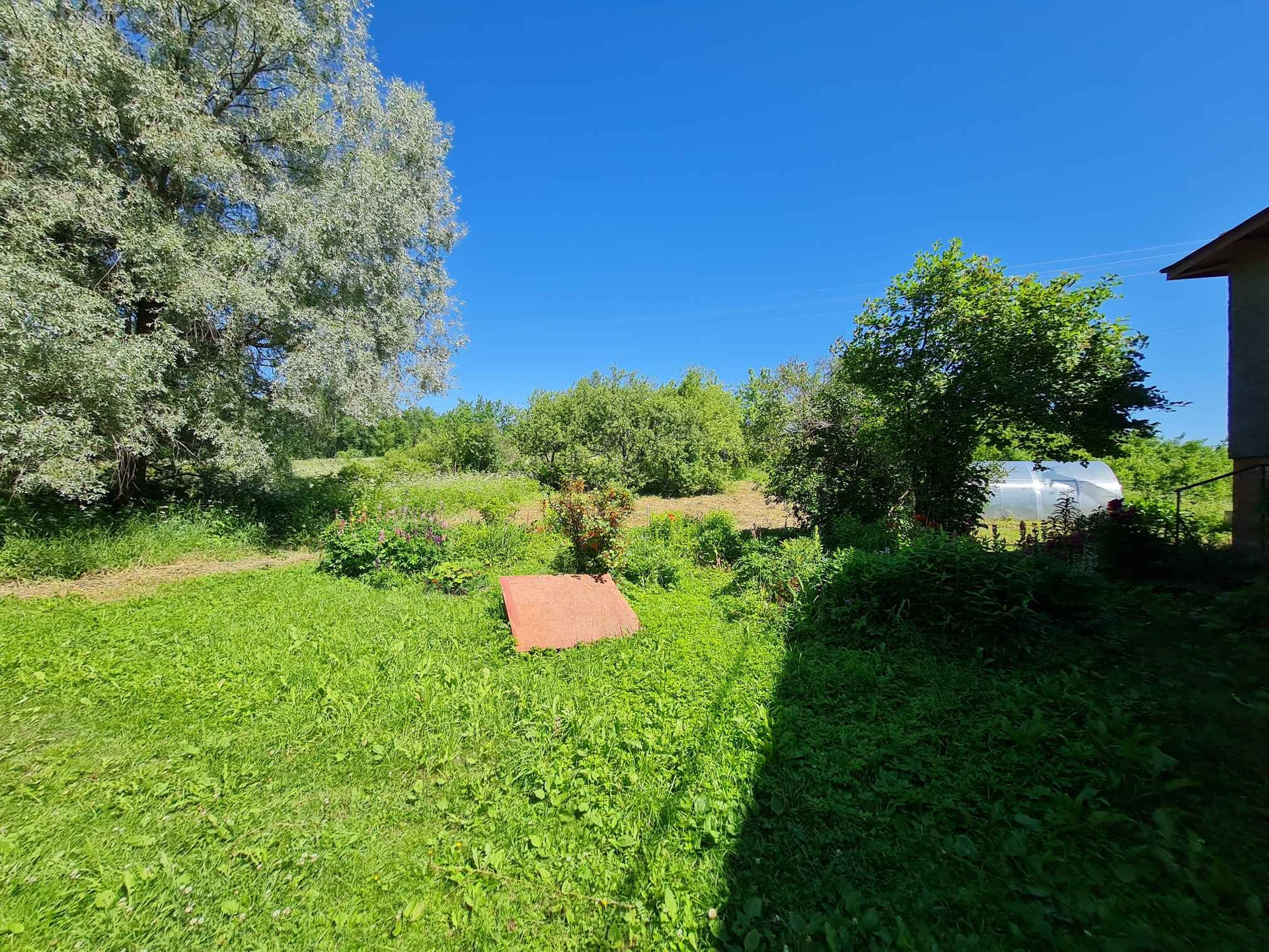 Земельный участок 62 сотки, на участке рубленный сарай, дровяник, теплица, яблони, сливы, груша, кустарники, цветы. Много зелени. До самого дома подъезд хороший асфальт.