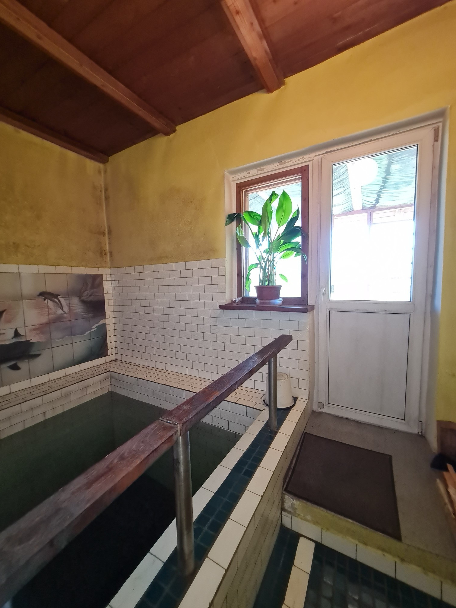 на 1 этаже кухня-столовая, прихожая, гостиная с камином, баня с бассейном с выходом на застекленную террасу.