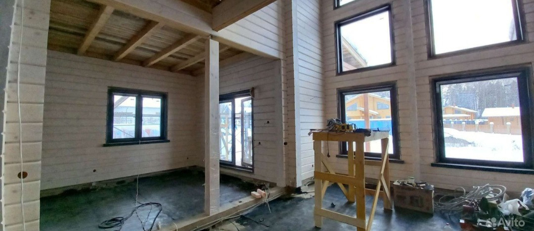СРОЧНО! Недостроенный дом в уникальном месте на берегу истринского водохранилища. Дом расположен в элитном закрытом поселке "Акватория Истры-2", поселок со своим пляжем, стоянкой для лодок, яхт, квадроциклов. Дом находится в 200м от воды. Построен в  2022г из клеенного бруса, сечением 185×200, крыша - мягкая черепица, вставлены качественные ламинированные окна. Отшлифован и покрашен изнутри и снаружи качественной дорогостоящей краской, т.е. стены отделки не требуют. Эл-во заведено в дом, газ по границе участка. Требуется внутренняя отделка потолков и пола, разведения отопления.