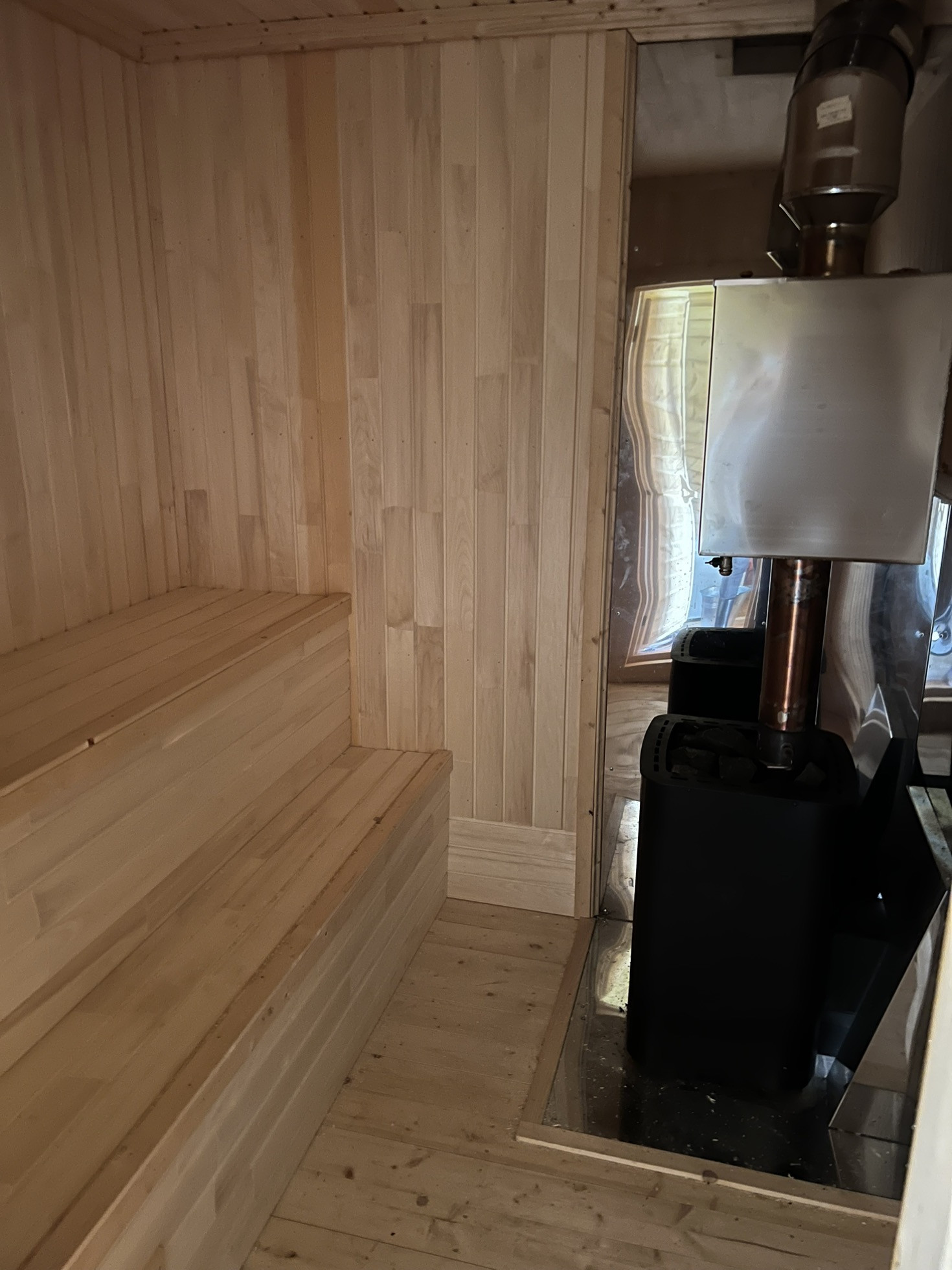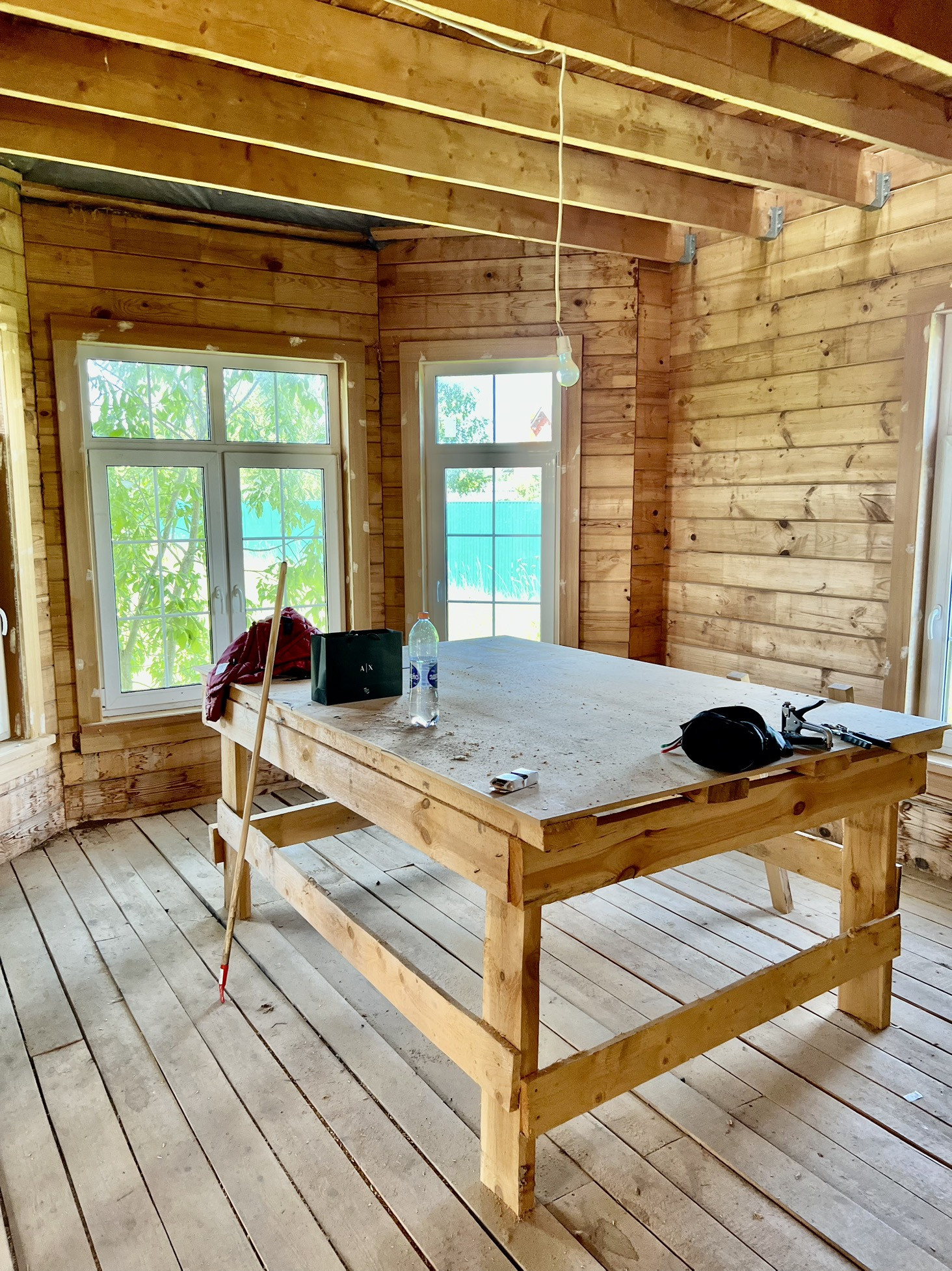 Дом 200 кв.м из клееного бруса в кп на берегу Истринского водохранилища в живописном месте. От дома до воды 5 минут пешком. Центральное водоснабжение, канализация, электричество 15кВт, газ заведен на участок. На участке есть гараж на 2 машины, помещением для бойлерной и кладовкой. Также построена баня из клееного бруса со вторым этажом и большой террасой. Дом не готов к проживанию