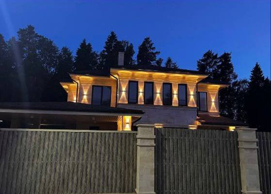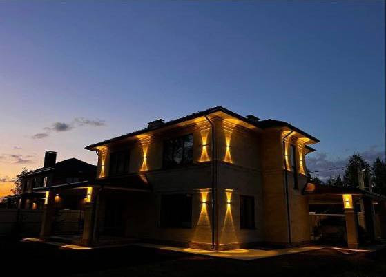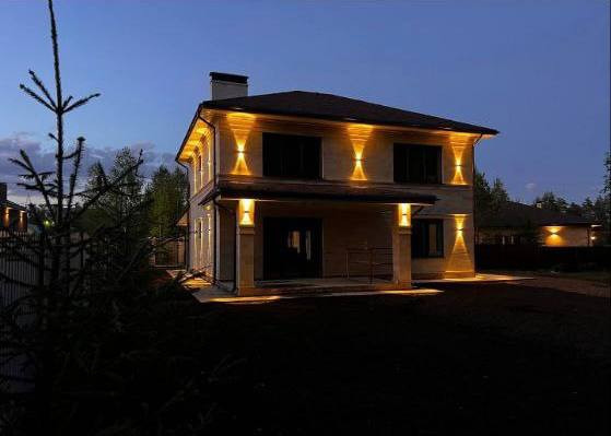 По периметру дома вмонтирована двухуровневая подсветка.