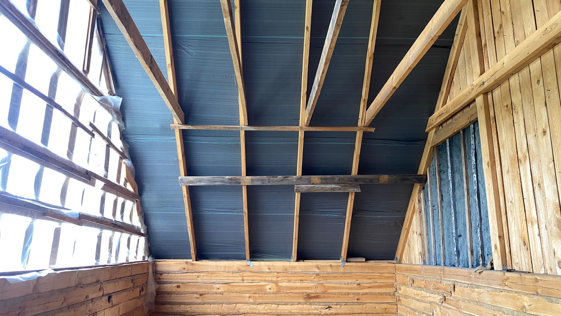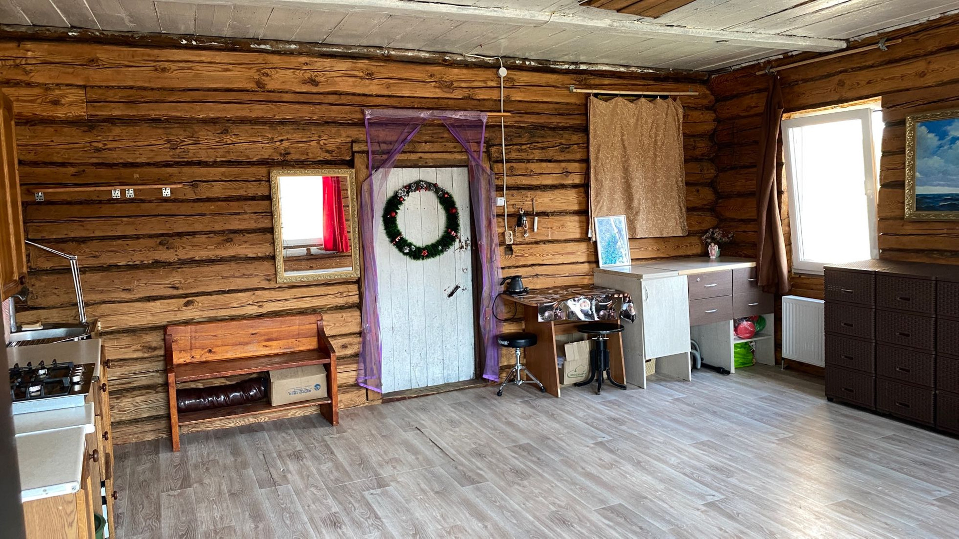 Старая часть дома - из брёвен.