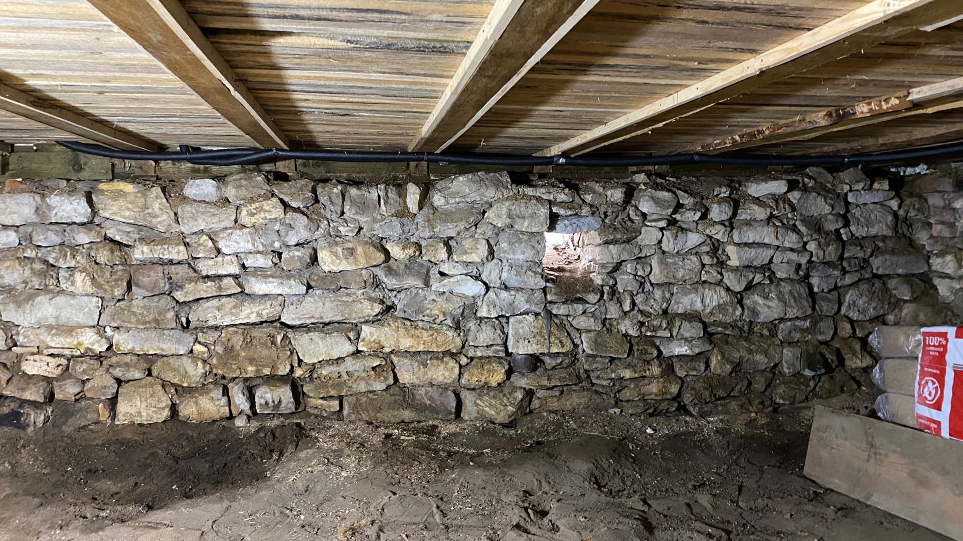 Просторный сухой подвал под всем домом.