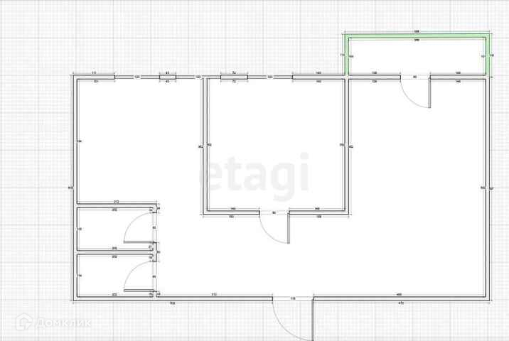 Общая площадь 52.6 м2