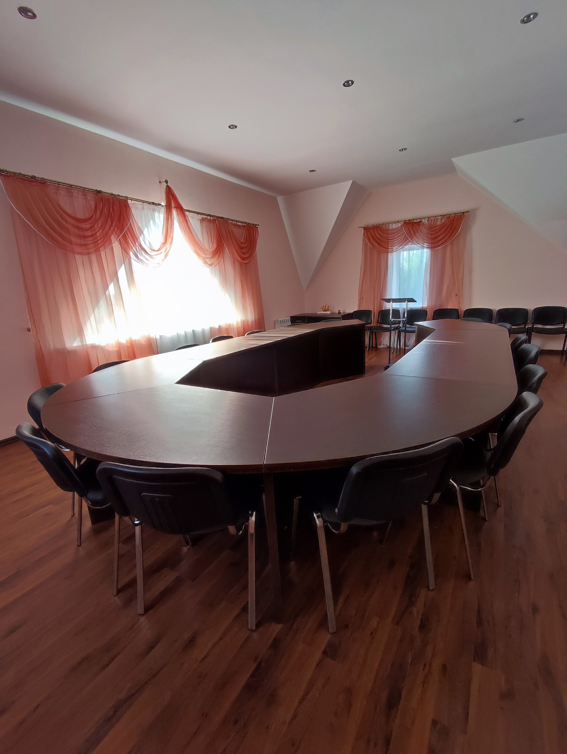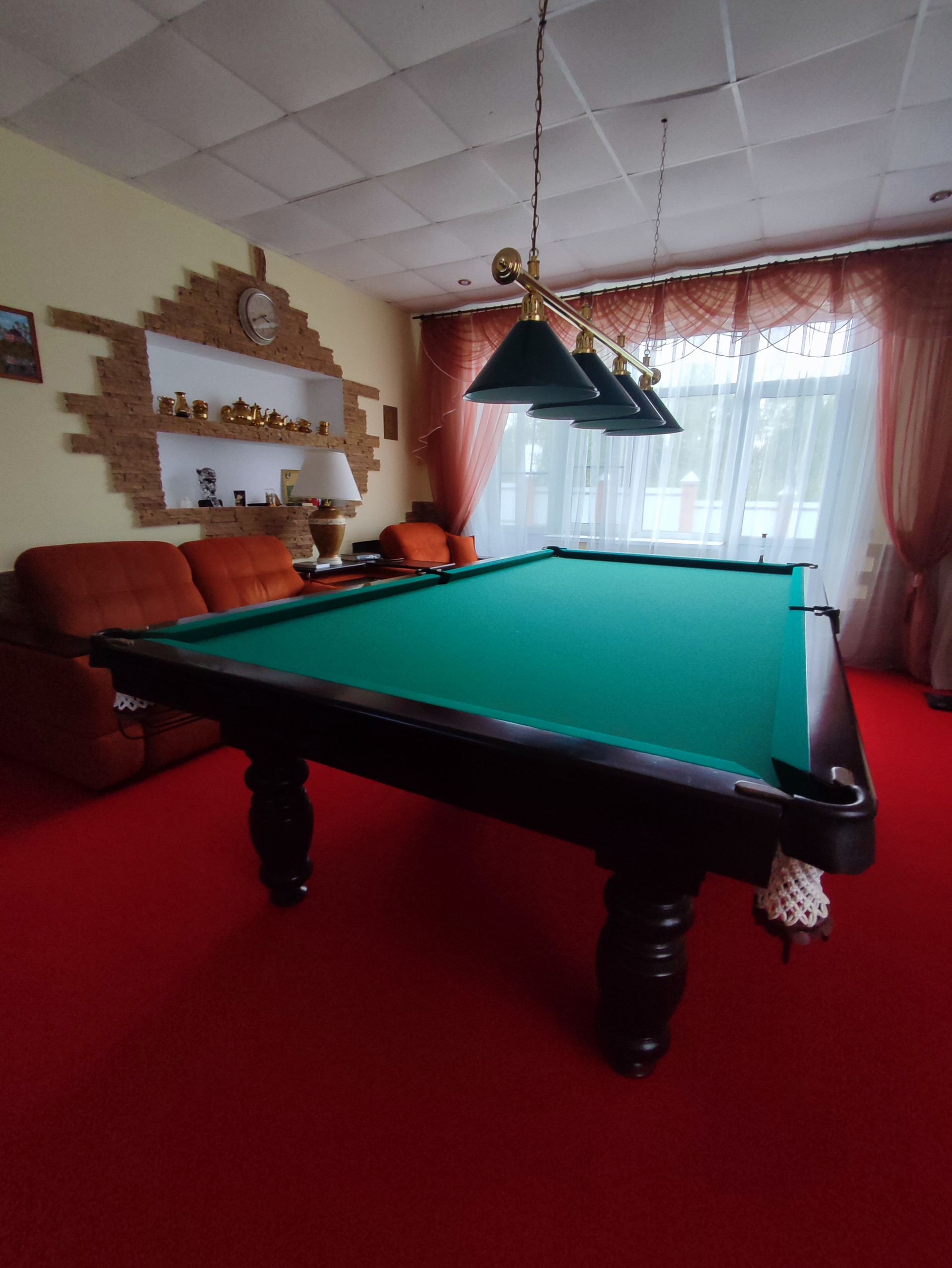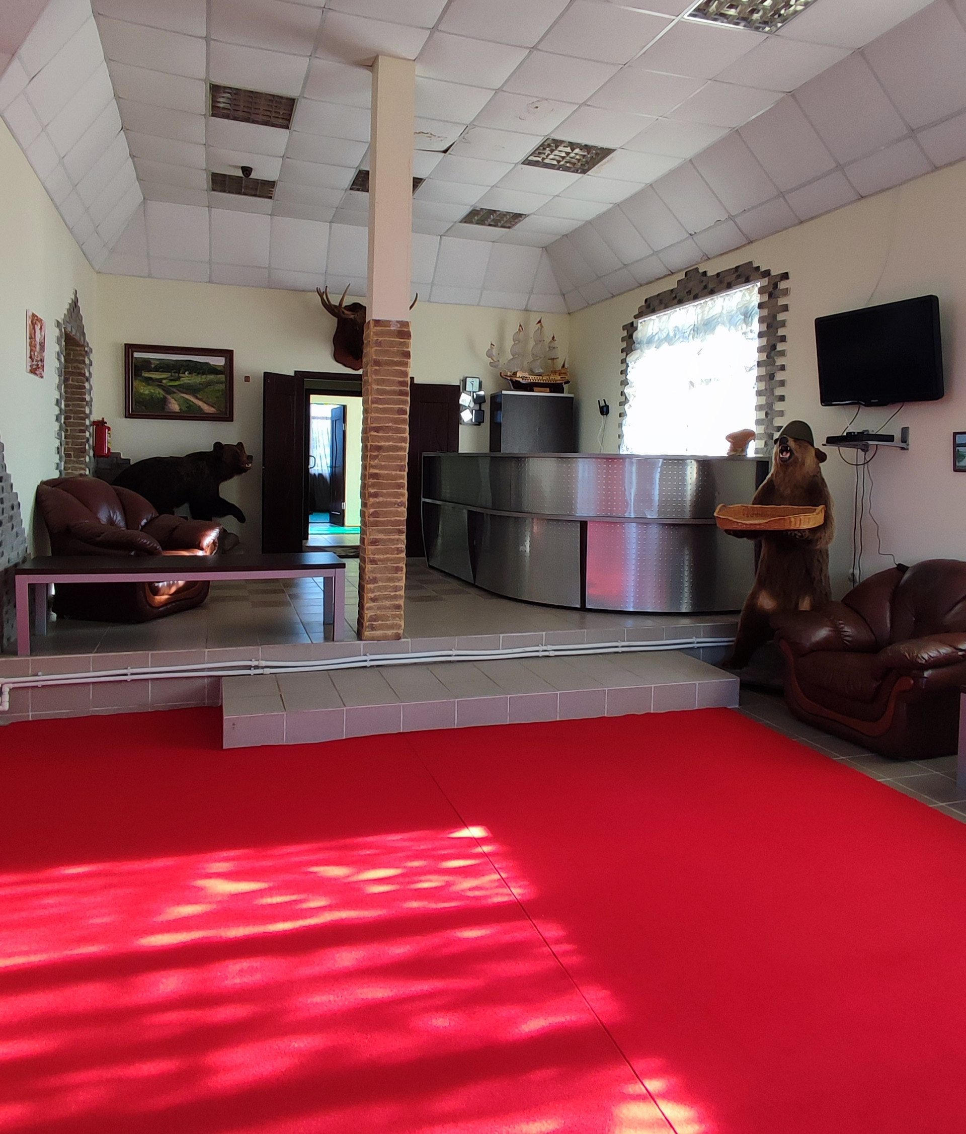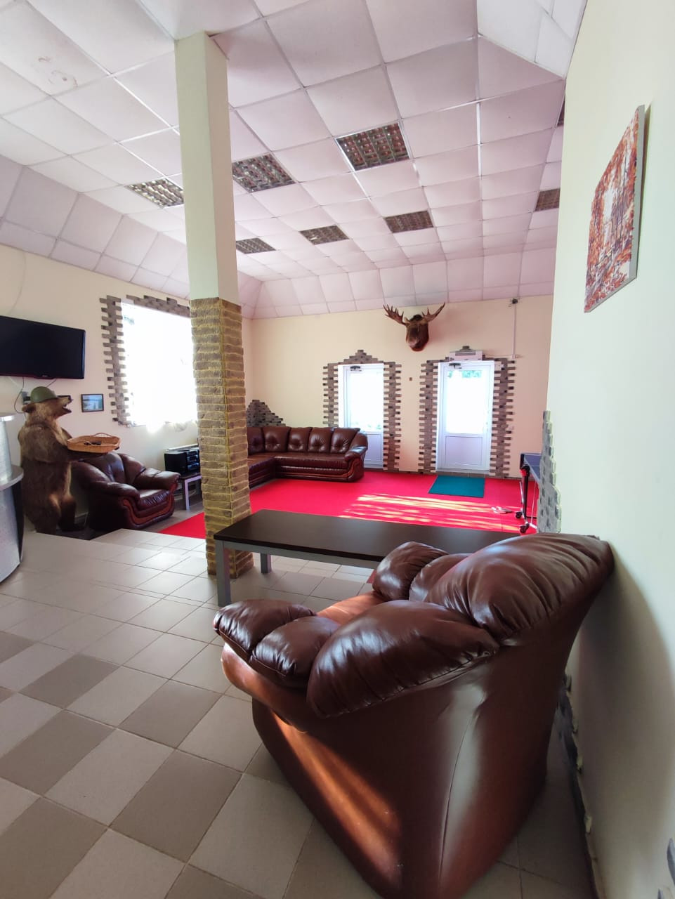 В активе отеля присутствуют: холл, ресепшен, конференц зал на 20 человек, бельевая комната, массажная комната, спорт зал, своё кафе, бильярдный зал, помещение для хранения посуды, помещения для персонала, прачечная, оборудованная профессиональная кухня, два гаража, цокольный этаж.