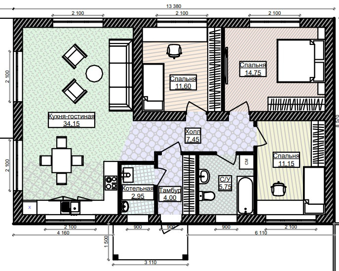 Общая площадь 100 м2