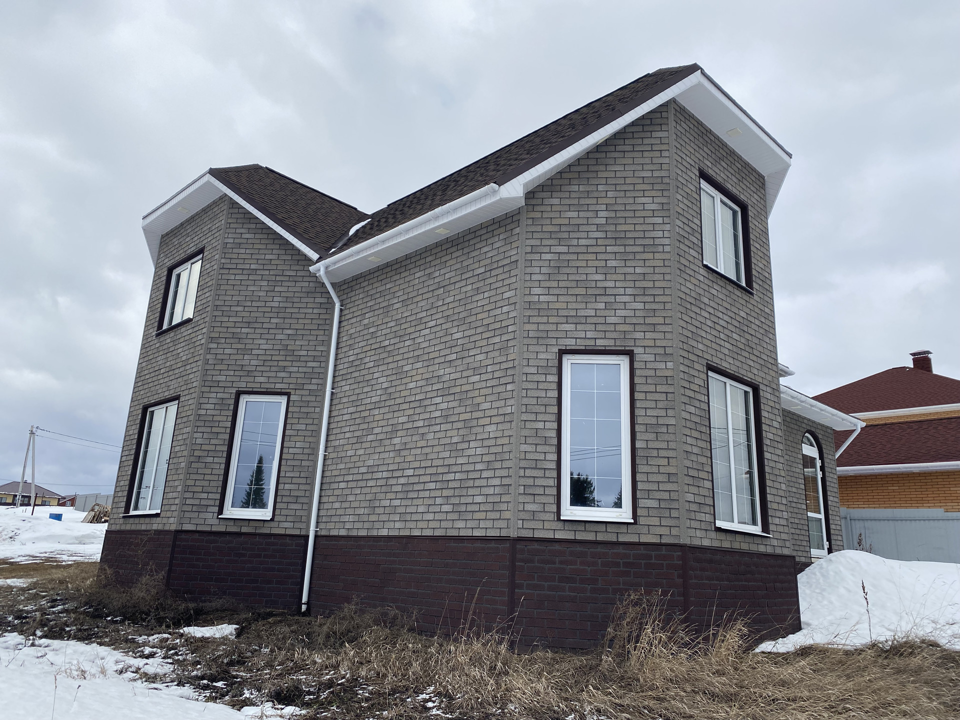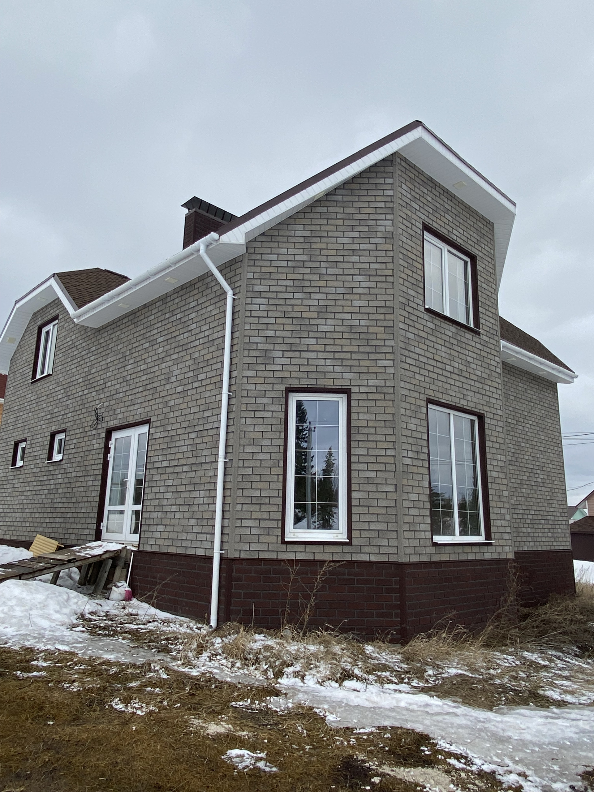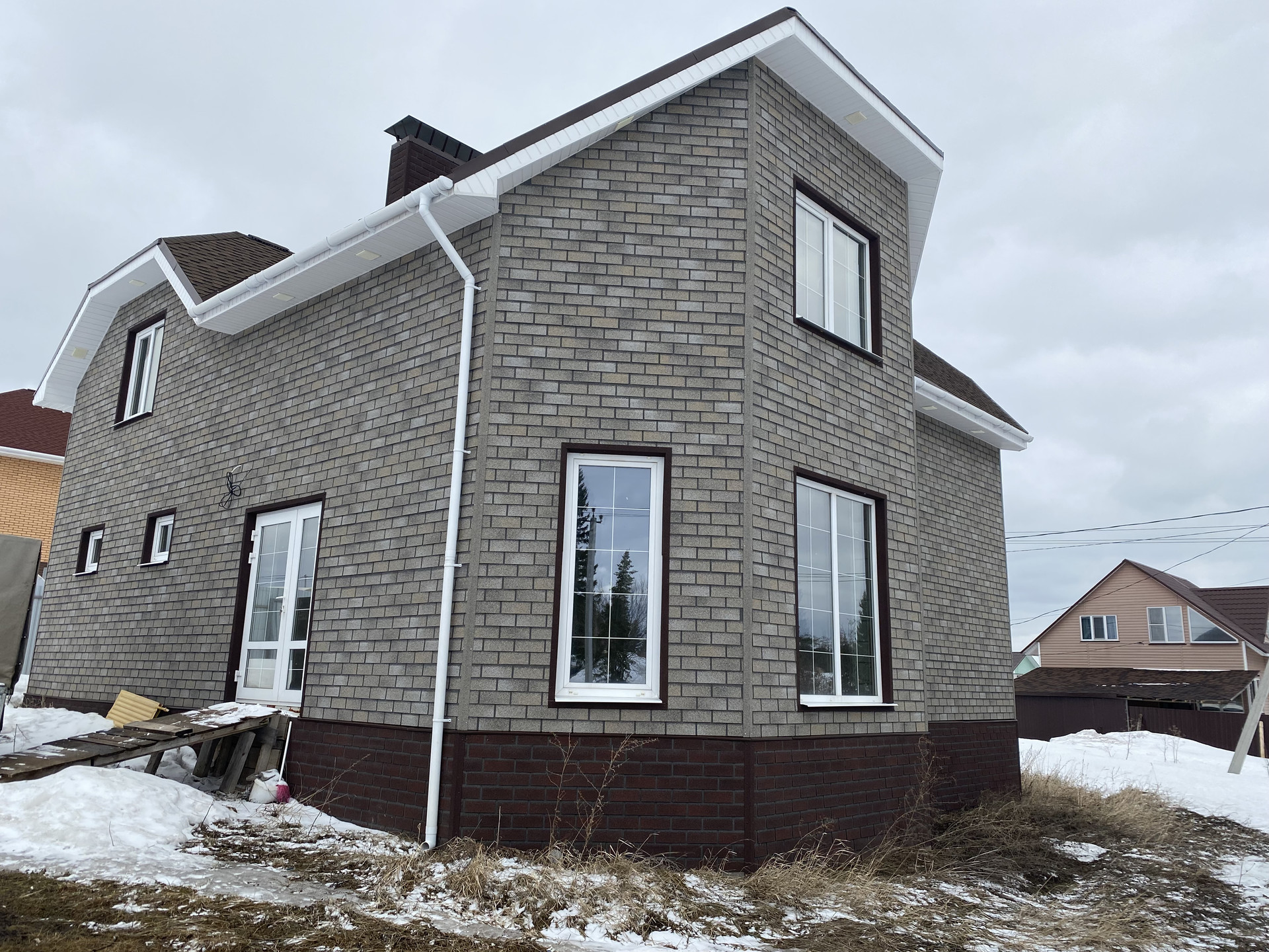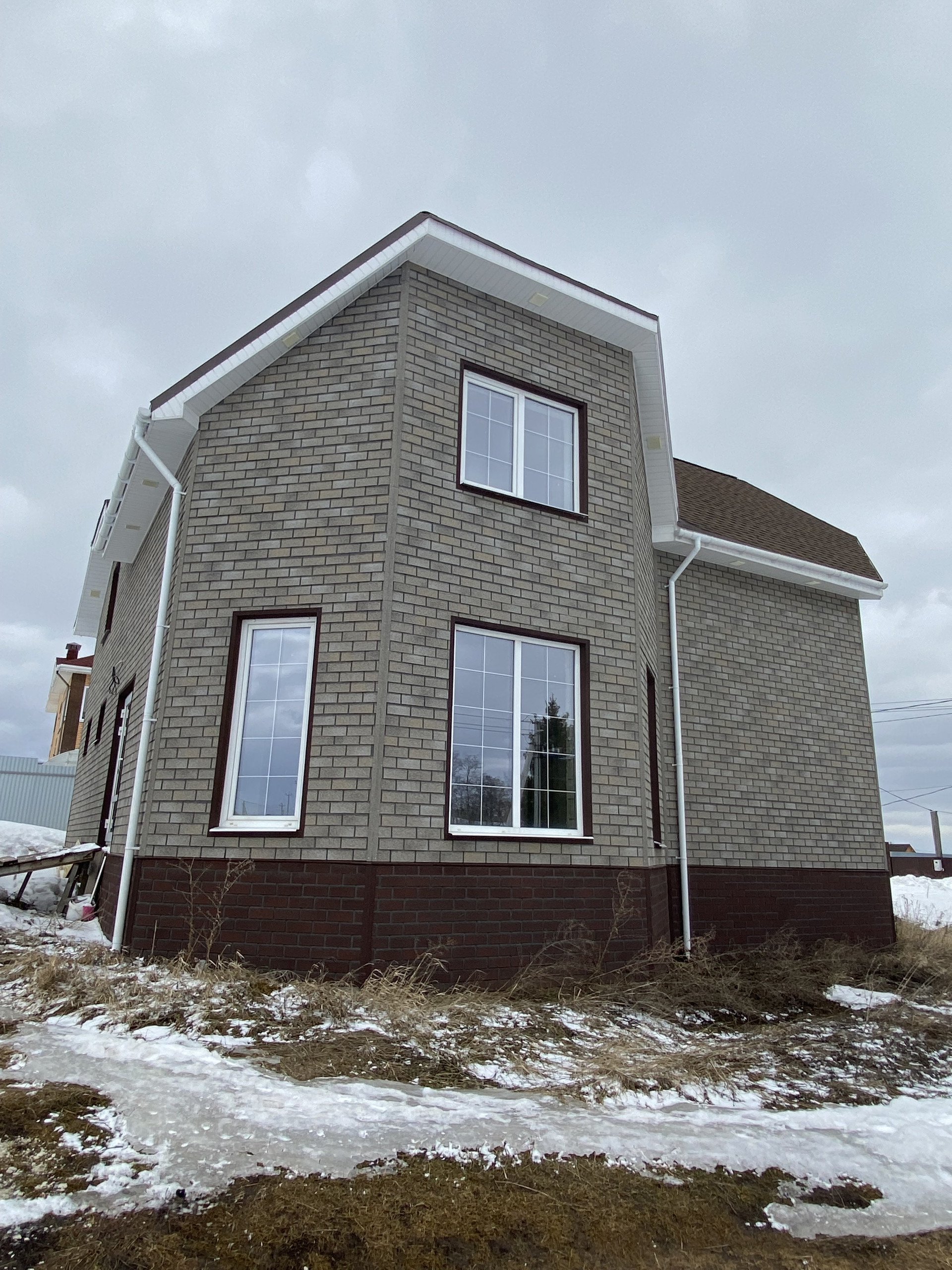 ✅ Конструктив стены — пеноблок 300мм + утепление 50мм + фасадная плитка под кирпич по OSB