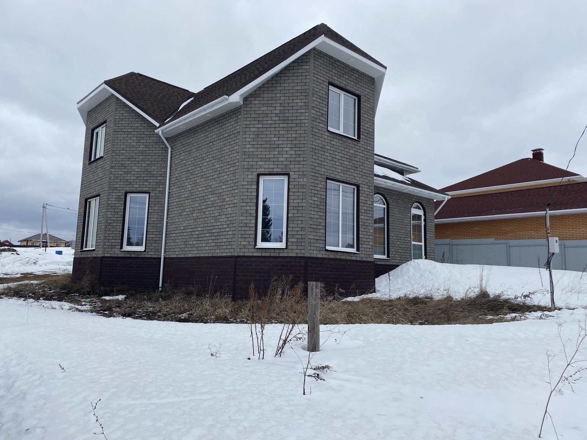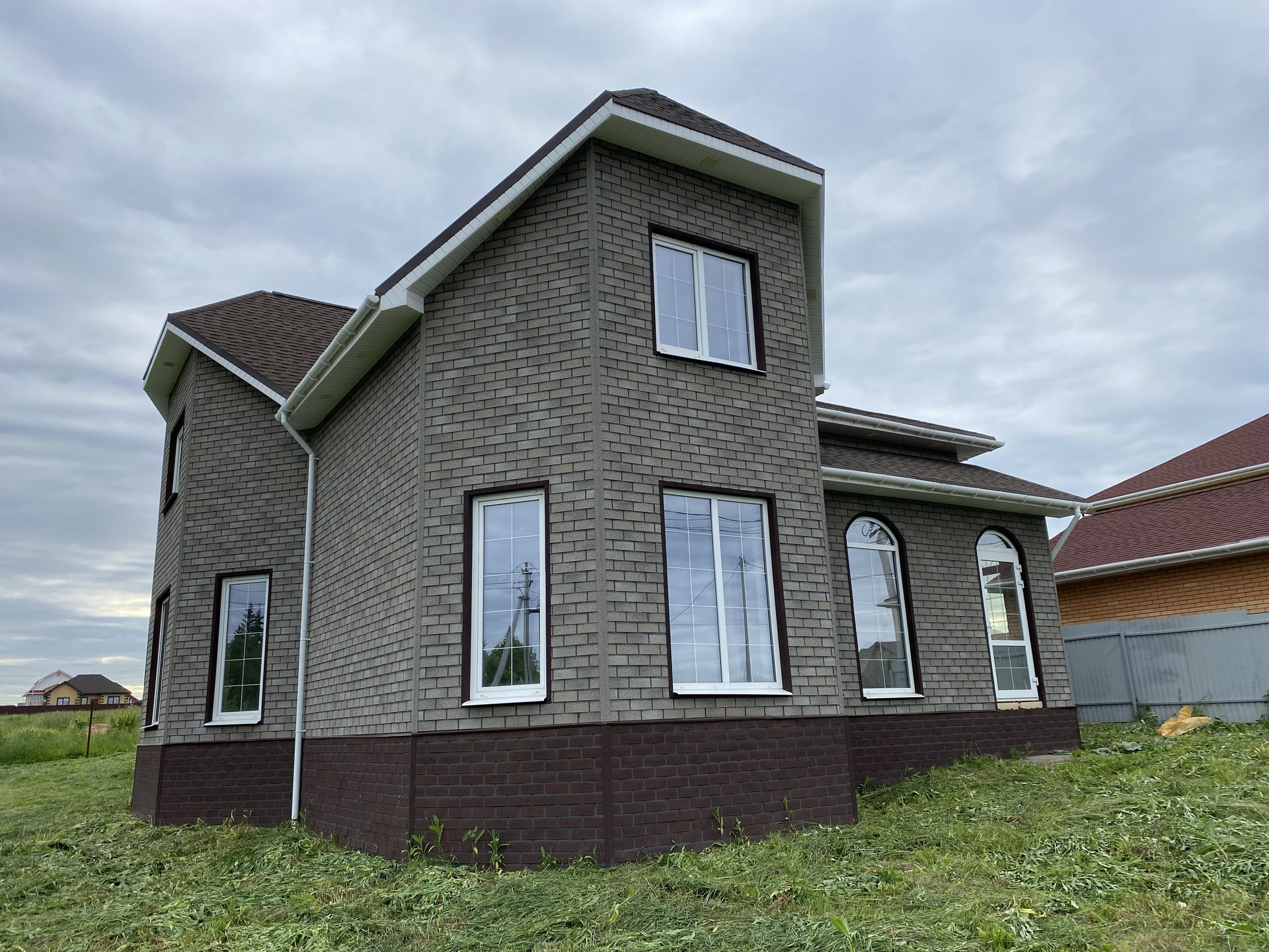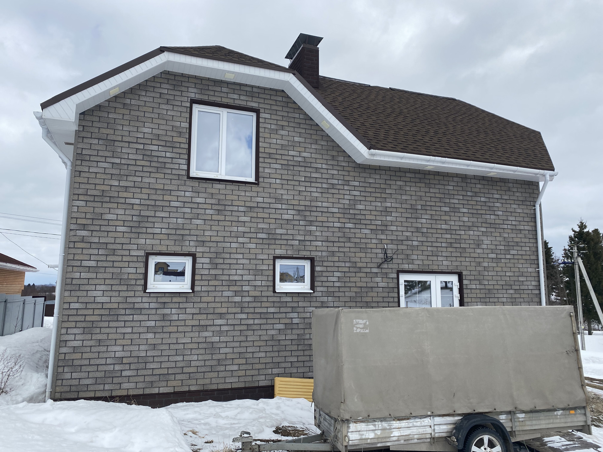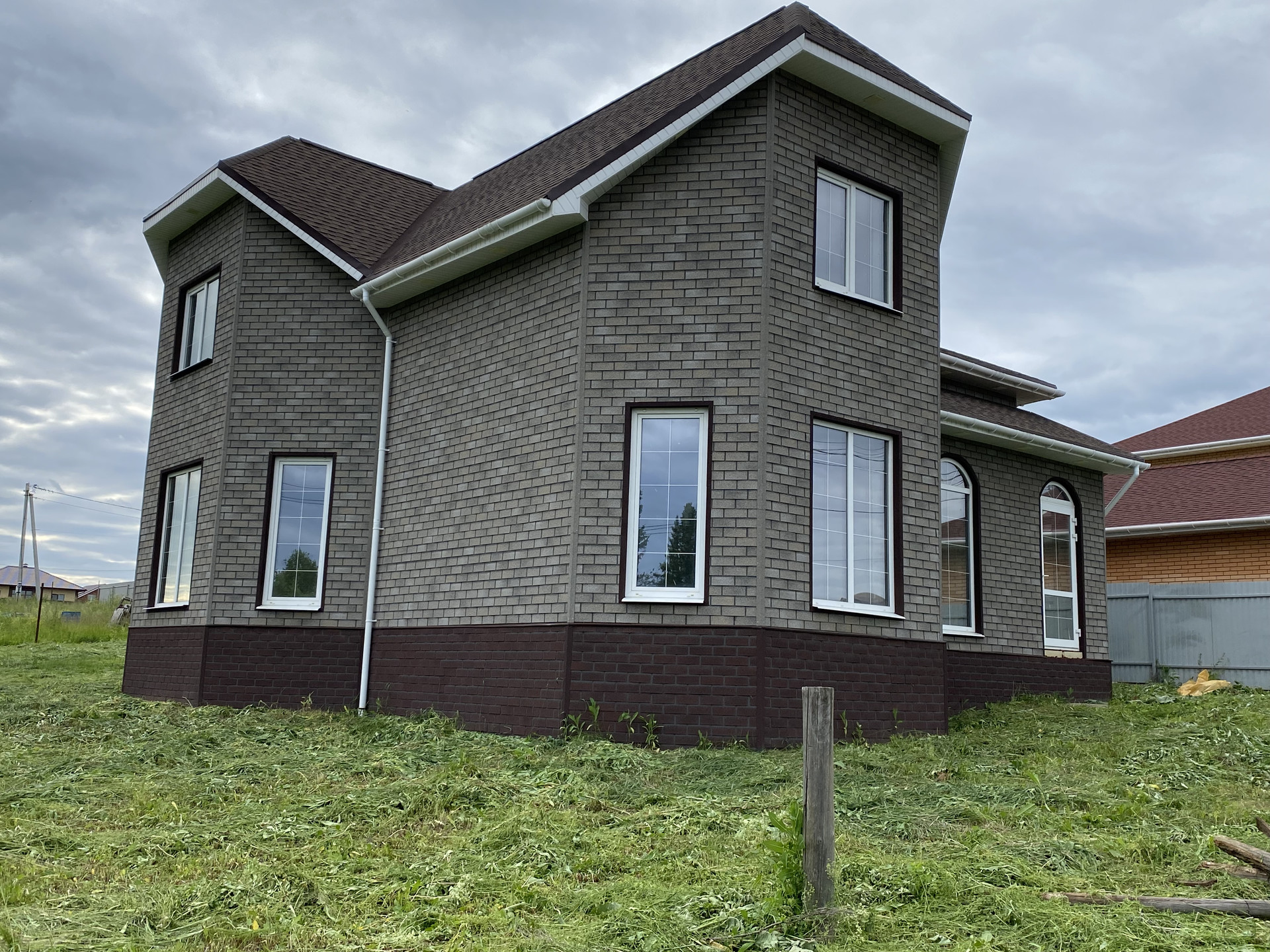 ✅ Конструктив стены — пеноблок 300мм + утепление 50мм + фасадная плитка под кирпич по OSB