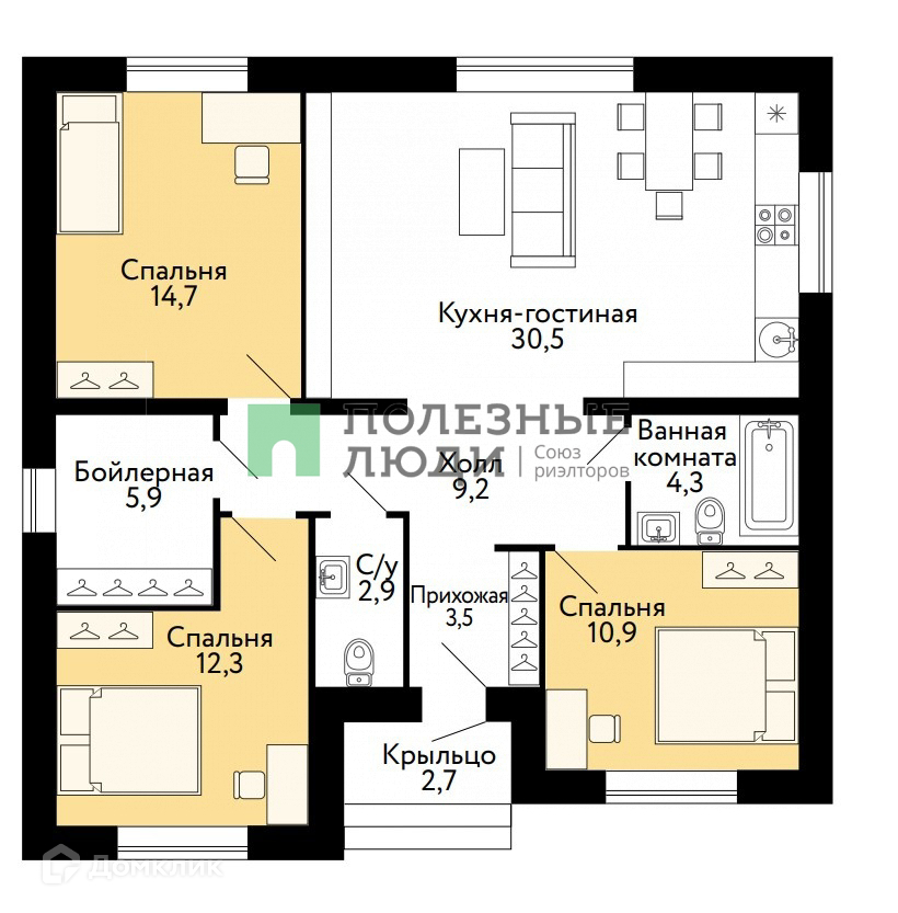 Общая площадь 70 м2