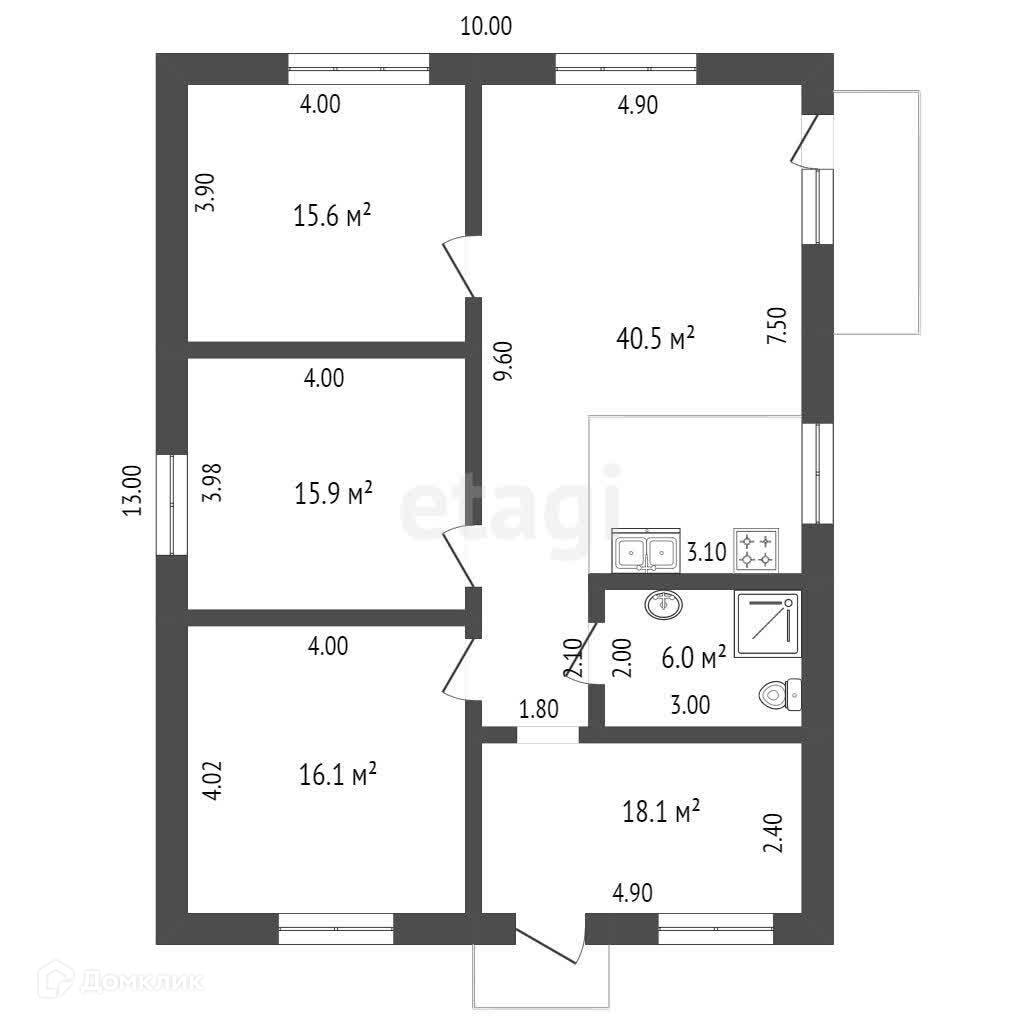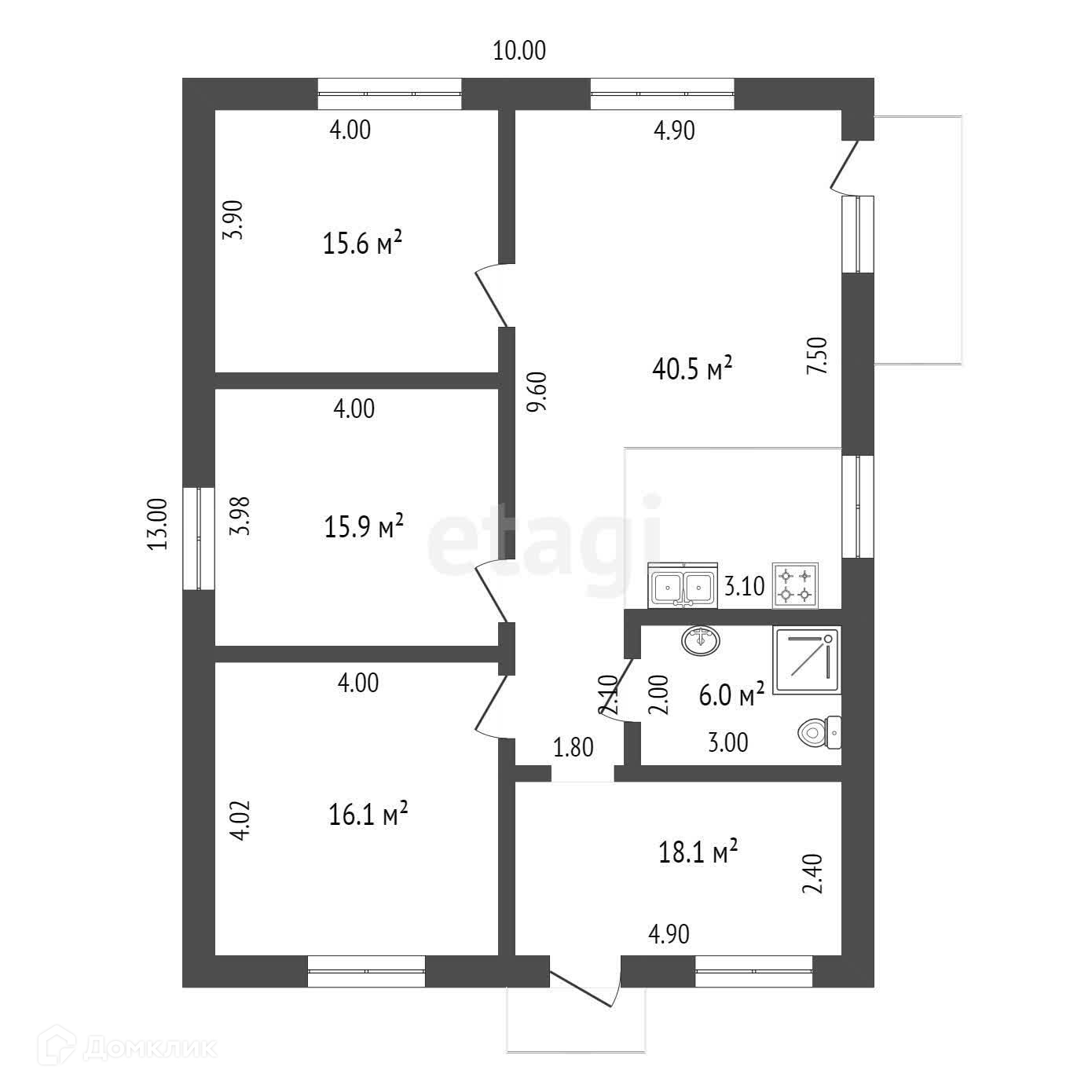 - Площадь 100 кв.м. с просторной в 40 кв.м кухней гостиной.