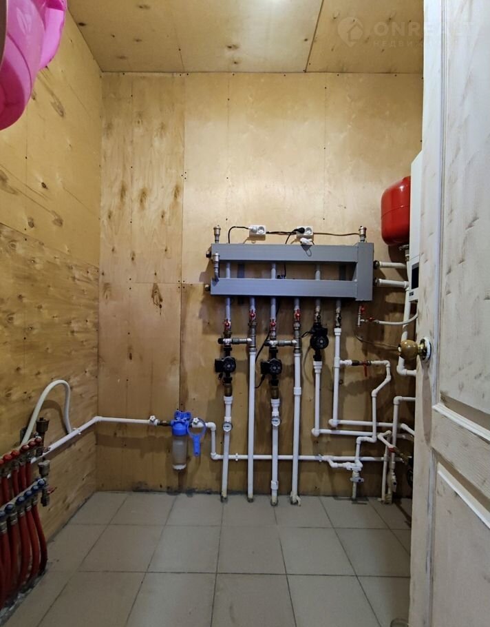Строился для себя, поэтому всё сделано на совесть. По всему дому разведены теплые полы. На сильные холода есть разводка радиаторов отопления. Установлена сантехника в двух санузлах. Два входа в дом.