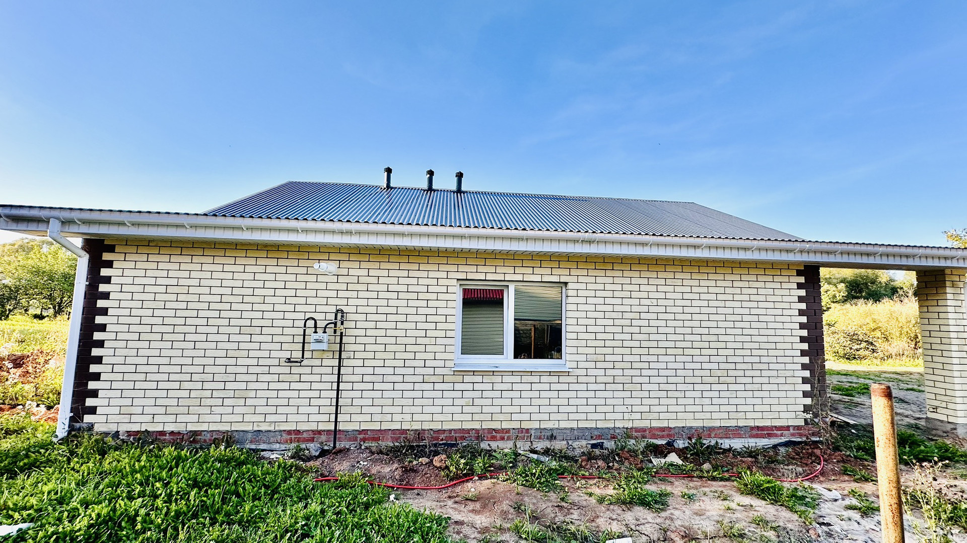 - Стены из газоблока, облицовка- кирпич, потолок утеплен эковатой, толщина утепления 200 мм. для максимальной теплоизоляции
