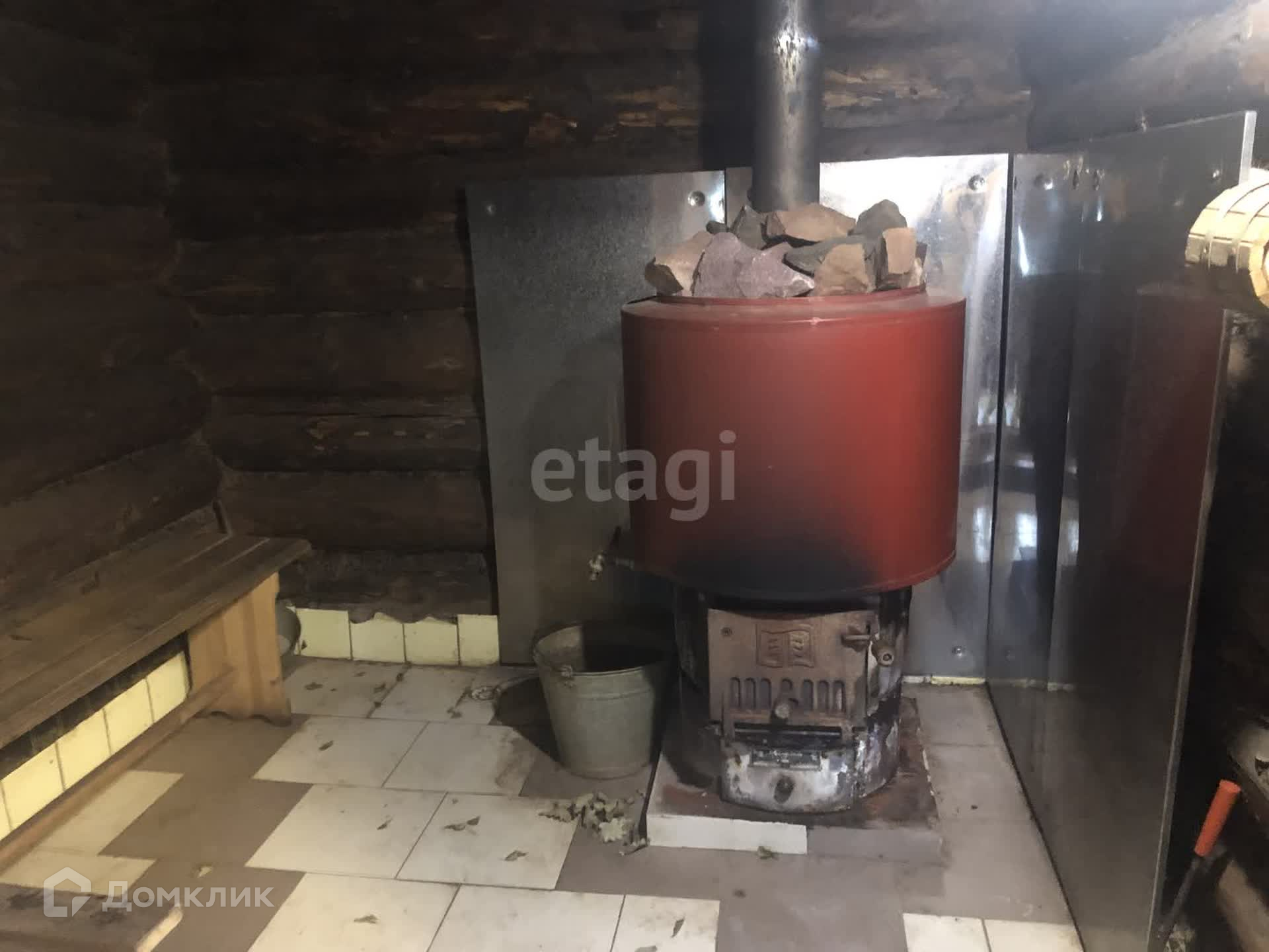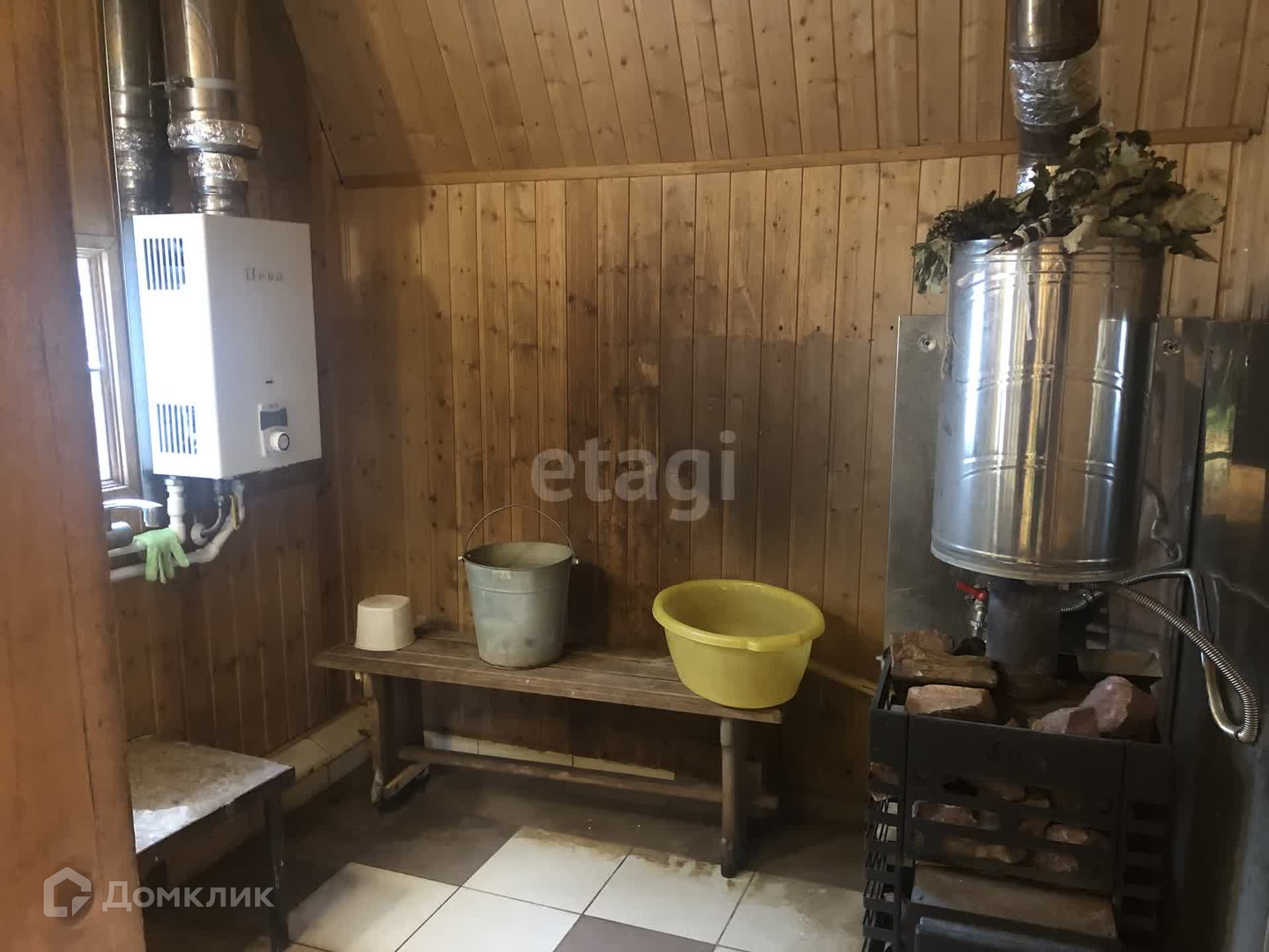 А на выходные, когда просто хочется расслабиться, можно пойти в баньку. Полностью обустроенная. Сделана на фундаменте, полностью сделана отделка, новая печь.