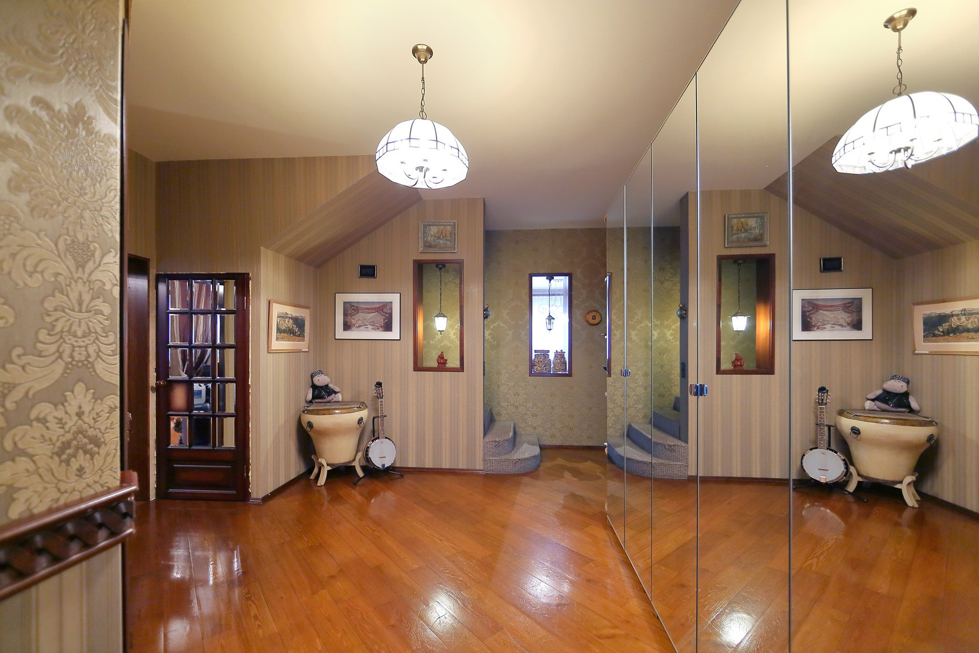В мансарде 4 спальни, гардеробная и ванная комната, кладовая и лестница на чердак.