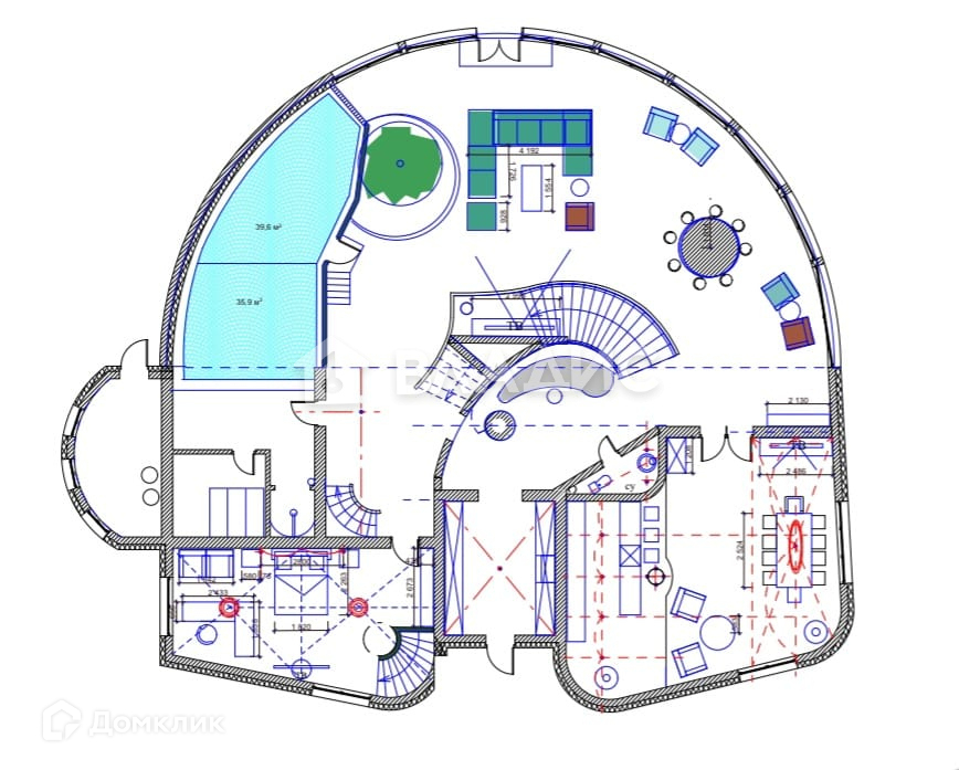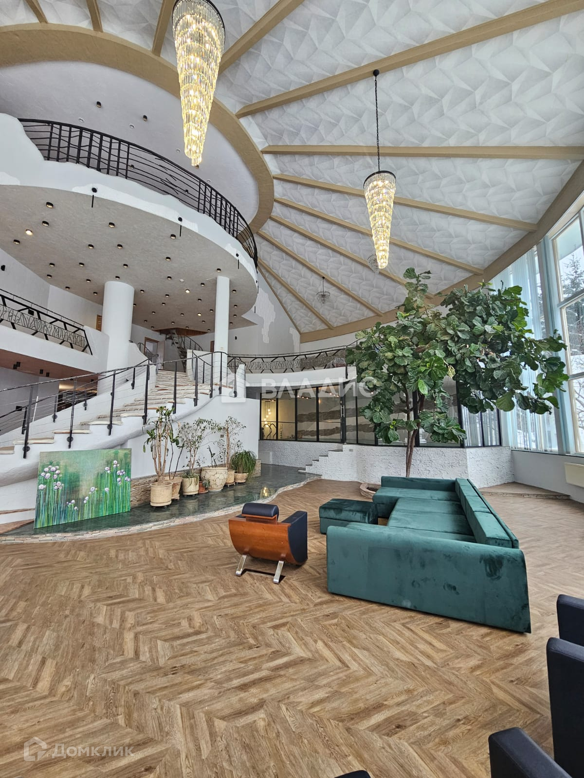 Здание шатерного типа 1 100 м2 с внутренним подогреваемым бассейном, большим просторным трёхсветным атриумом.